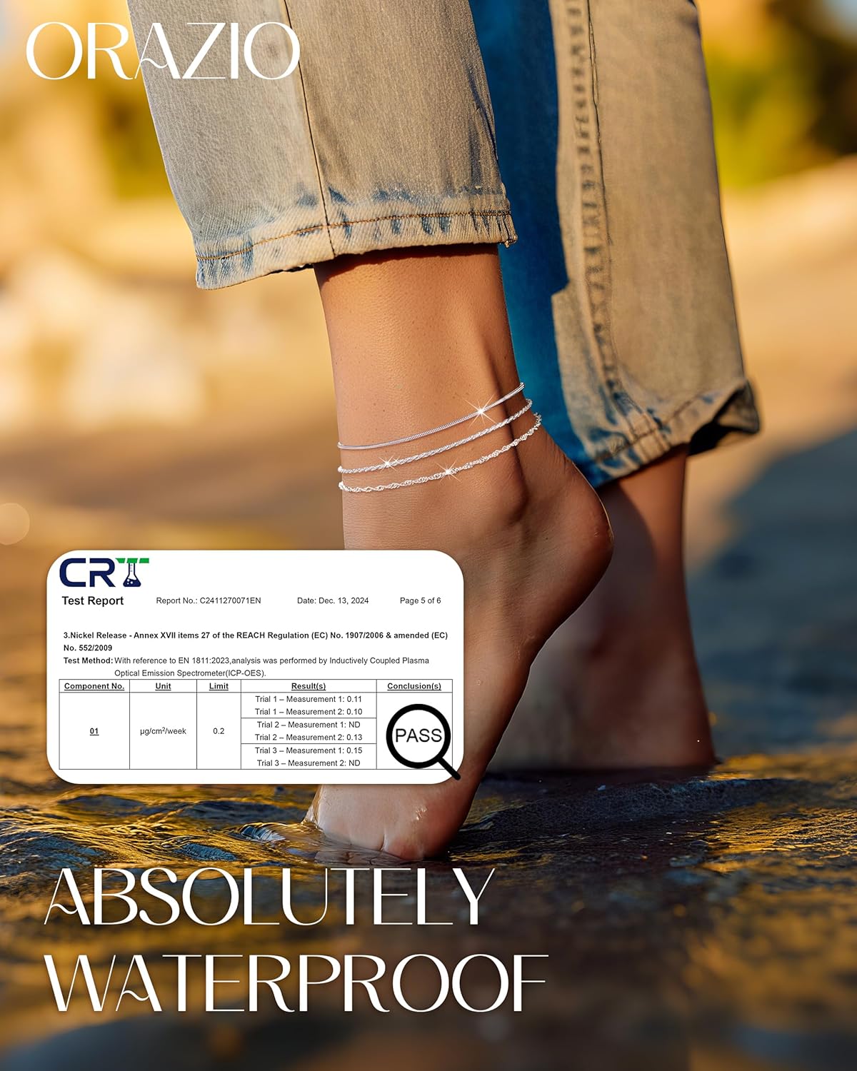 ORAZIO 3er Set Fußketten Damen - Silber 925 Wasserdicht & Verstellbar
