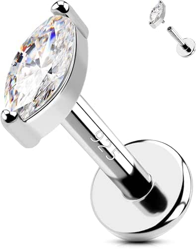 OUFER Titan Labret Piercing 16G - Aqua CZ Steinchen, Super Für Lippe & Ohr