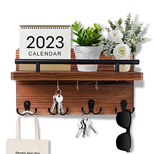 OUZHOU Schlüsselkasten Aus Holz - Vintage Design Mit 6 Haken Für Schlüssel & Schmuck
