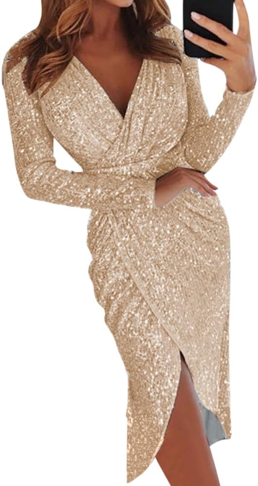 Wow, dieses Abendkleid von Oanviso wird alle Blicke auf dich ziehen! Das knielange Kleid im Bodycon-Schnitt betont deine Figur perfekt und der Glitzer-Stoff lässt dich bei jedem Licht funkeln. Mit Langarm und V-Ausschnitt ist es sowohl sexy als auch elegant. Perfekt für so viele Anlässe: Ob Cocktailparty, Abendveranstaltung, Club oder besondere Feiern - in diesem Kleid machst du immer eine gute Figur! Der klassische Schnitt zaubert eine tolle Silhouette und das Material ist angenehm zu tragen. Wichtig: Bitte ignoriere die asiatischen Größenetiketten, wir liefern in europäischen Größen! Kombiniere es mit High Heels für einen glamourösen Look oder mit Sneakers für einen lässigen Style. Ein Kleid, das in keiner Garderobe fehlen sollte - einfach anziehen und strahlen!