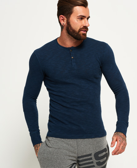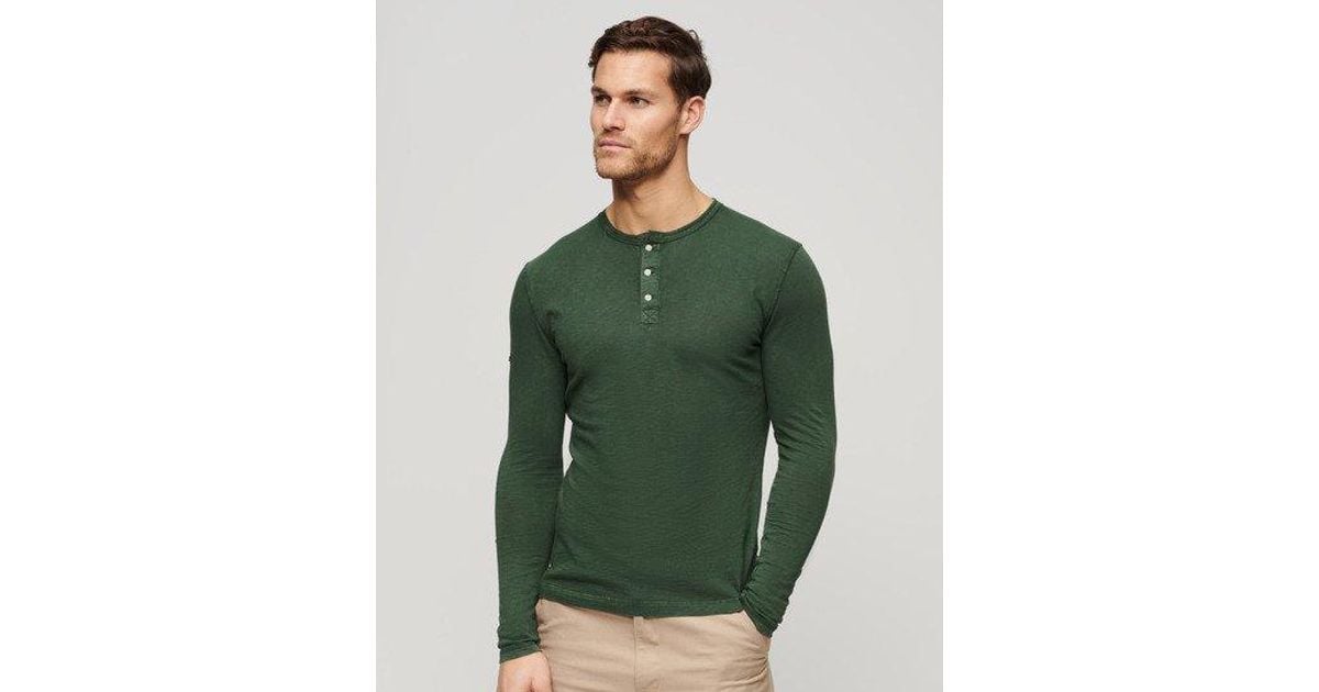 Superdry Herren Grandad Oberteil Langarm - Jersey Hemd Mit Knopfleiste
