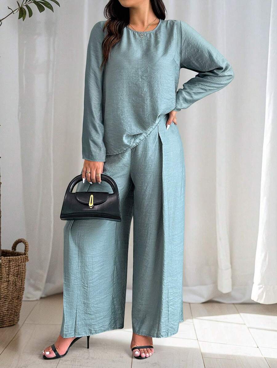 OLIPHEE 2-teiliges Damen Set - Langarm Oberteil & Weite Hose Für Lounge, Yoga & Freizeit