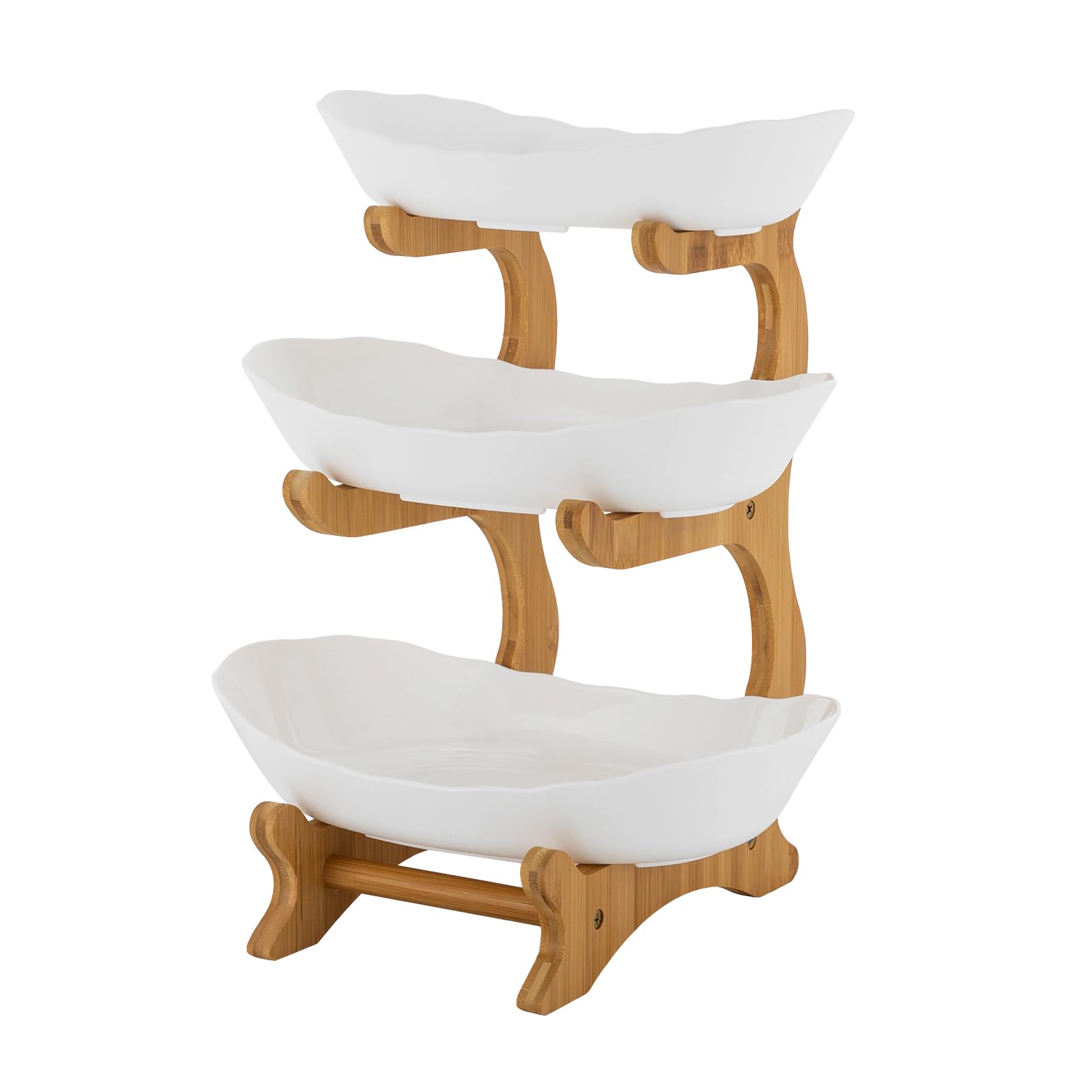 Miawtro Etagere 3 Etagen Obstschale - Platzsparende Obstkorb Aus Bambus & PP 32x28x22,5cm