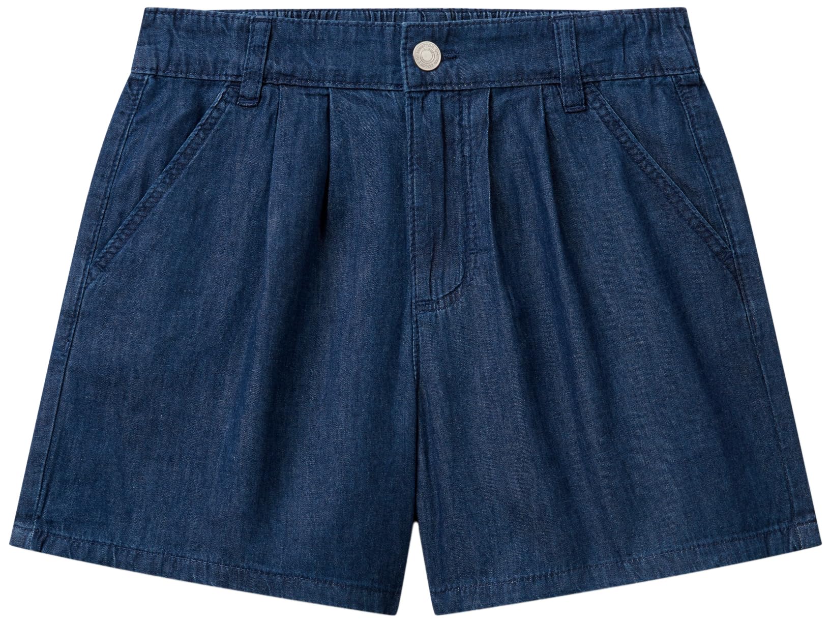 Coole Sommer-Shorts von United Colors of Benetton für aktive Kids! Aus 100% weicher Baumwoll-Chambray mit 4 praktischen Taschen. Die Öffnung mit Reißverschluss und Knopf sowie der elastische Bund hinten sorgen für perfekten Tragekomfort. Das gestickte Logo auf der Gesäßtasche und die zweifarbige Denim-Waschung in hell und dunkel machen diese Shorts zum echten Hingucker. Perfekt für Schule, Freizeit oder Urlaub - einfach anziehen und los geht's! In Größe 170cm und vielen weiteren Größen erhältlich. Benetton-Qualität, die lange hält und super aussieht.