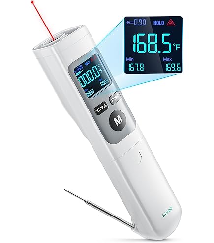Perfekte Garergebnisse garantiert! Das SUNARTIS Ofenthermometer aus Edelstahl misst präzise von 50°C bis 300°C (±5°C Genauigkeit). Mit mehrfarbigem Ziffernblatt das optimale Temperaturbereiche anzeigt: Niedergaren (80-90°C), Backen (180-200°C), Braten (200-220°C). Aus hochglanzpoliertem Edelstahl, hitzebeständig und spülmaschinenfest. Mit Standfuß und Haken für flexible Platzierung im Ofen. Robustes Gehäuse mit hitzebeständigem Glas. Seit 1999 steht SUNARTIS für Qualität und Präzision in der Küche. Platzieren es nahe am Bratgut für genaueste Messwerte. Ein unverzichtbarer Helfer für perfektes Backen und Braten. Professionelle Ergebnisse für Hobbyköche und Profis. Mach deine Küche komplett mit diesem präzisen Thermometer!