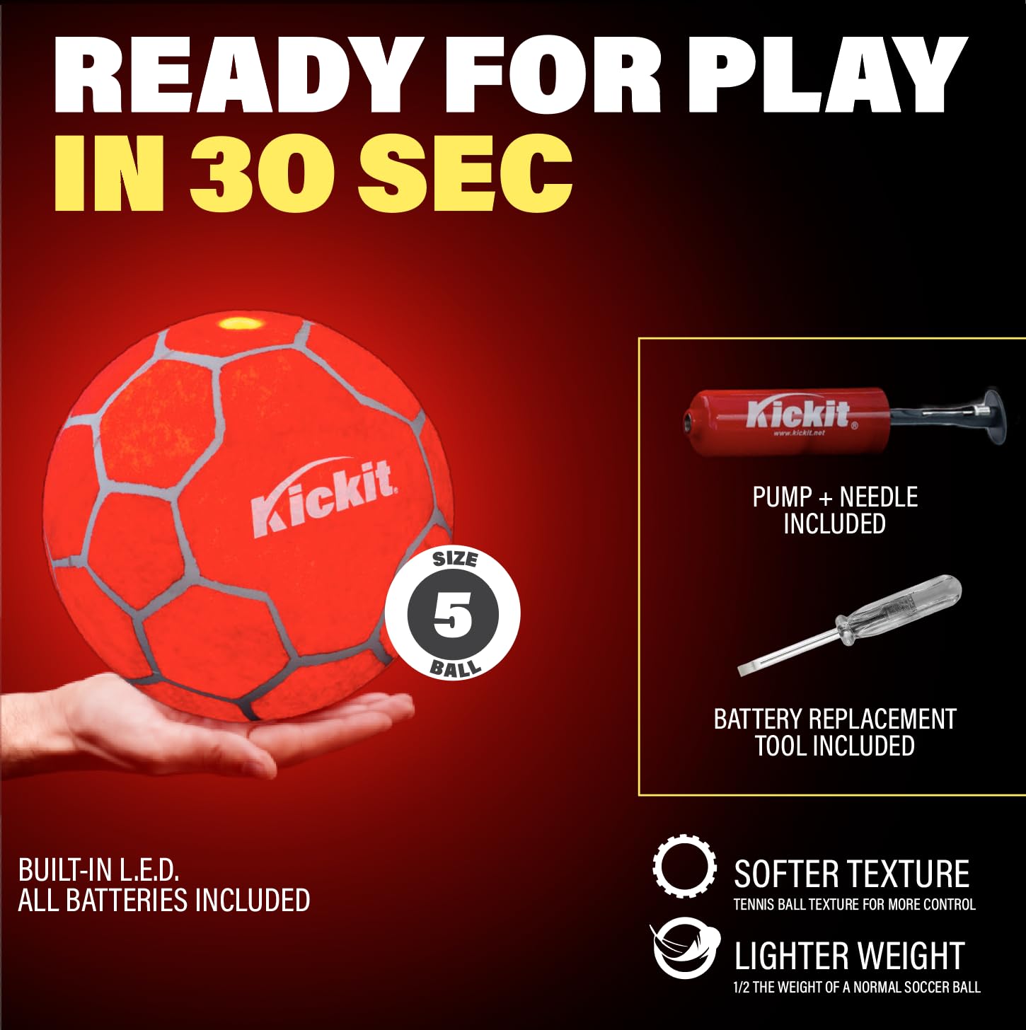 Total genial für alle, die Fußball mal anders spielen wollen! Der offizielle Kickit Soccer Tennis Ball ist in Größe 5, wie ein normaler Fußball, aber nur halb so schwer. Perfekt für Soccer Tennis - dieses coole Spiel, das Fußball und Tennis kombiniert. Mit der Air-Grip-Technologie fliegt er etwas langsamer, sodass du mehr Zeit für deine Schüsse hast. Und das beste Feature: Du kannst den Luftdruck selbst anpassen! Weniger Druck = leichtere Kontrolle, mehr Druck = mehr Challenge. Super weich für Kopfballtraining und barfuß am Strand spielen. Ob auf'm Fußballplatz, Tennisplatz, im Garten oder sogar indoor - dieser Ball macht überall Spaß. Einfach mitnehmen und loslegen!