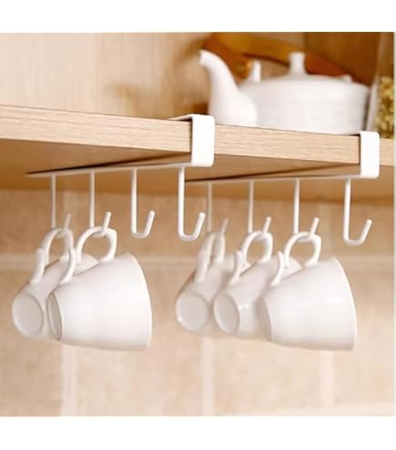 Schluss mit unordentlichen Tassen in der Küche! Diese 2 praktischen Tassenhalter mit je 4 Haken bringen sofort Ordnung. Das Beste: Sie werden einfach ohne Bohren mit den mitgelieferten Klebeschrauben unter Schränke oder Regale montiert. Aus robustem Metall mit schwarzer Lackierung, rostfrei und langlebig. Die Haken haben genug Abstand, damit die Tassen sich nicht berühren. Aber nicht nur für Tassen - auch für Geschirrtücher, Kochlöffel oder andere Küchenhelfer super geeignet. Spart Platz und sieht dabei noch stylisch aus. Einfach anbringen und sofort mehr Ordnung genießen!