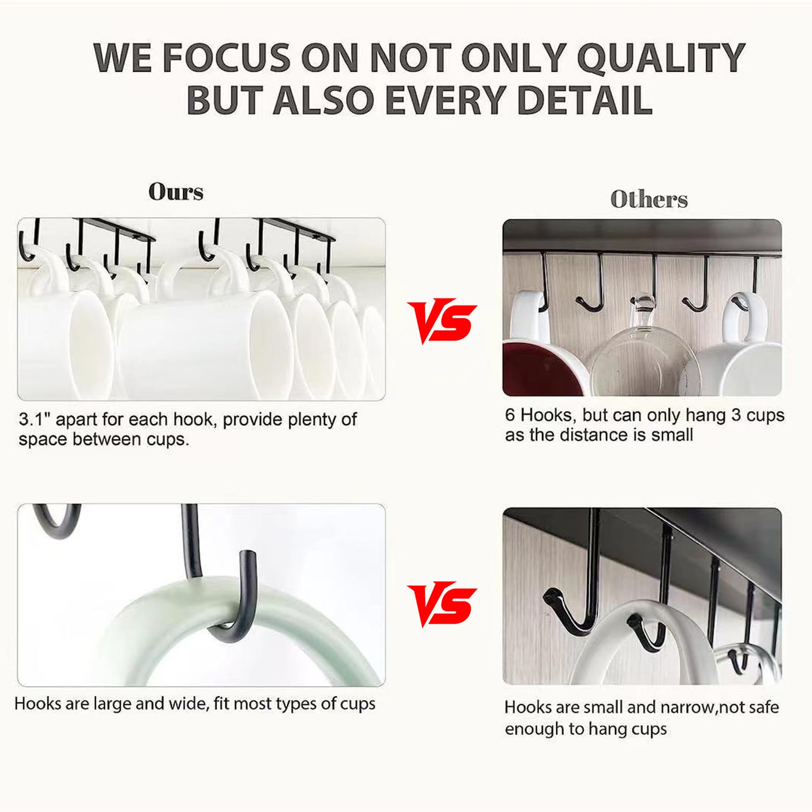 2x Tassenhalter Ohne Bohren - 4 Haken Für Schrank & Regal In Schwarz