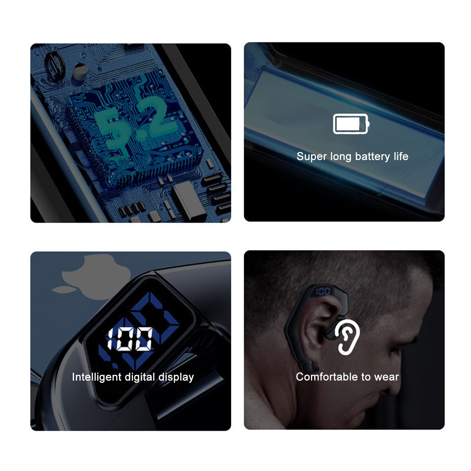 Endlich Kopfhörer die nicht im Ohr drücken! Die ASHATA Bluetooth Kopfhörer mit Ohrbügel sitzen einfach perfekt ohne lästige Ohrstöpsel. Mit Bluetooth 5.2 Chip für stabile Verbindung und weniger Stromverbrauch. Die LED-Anzeige zeigt dir immer den Akkustand an - praktisch! Bis zu 12 Stunden Spielzeit und nur 2 Stunden Ladezeit - ideal für lange Trainingseinheiten. Weil sie nicht im Ohr stecken, hörst du immer noch deine Umgebung - super sicher beim Joggen oder Radfahren! Das ergonomische Design liegt angenehm am Ohr an, ohne zu wackeln oder zu vibrieren. Perfekt für Sport, Arbeit oder einfach unterwegs. Einfach koppeln, aufsetzen und los geht's! Im Lieferumfang: Kopfhörer, Ladekabel, Silikonhülle und Anleitung. So macht Musik hören Spaß!