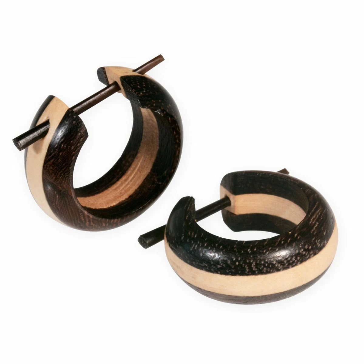Echt natürlich und total stylisch! Diese Pin-Creolen aus schwarzem Sonoholz sind was Besonderes. Handgeschnitzt und mit 15mm Größe genau richtig - auffällig aber nicht zu groß. Das schwarze Holz mit seiner natürlichen Maserung sieht einfach edel aus. Perfekt für normale Ohrlöcher (nicht gedehnt!) und für Damen UND Herren geeignet. Der spitz zulaufende Pin macht das Anziehen super einfach. Jedes Paar ist ein Unikat, da handgefertigt - Maserung und Farbe können leicht variieren. Das gibt dem Schmuck seinen besonderen Charakter. Ob zum Alltags-Outfit oder für besondere Anlässe - diese Ohrringe machen immer was her. Ein tolles Geschenk für alle, die natürlichen Schmuck lieben. Einfach anziehen und sich über einzigartigen Holzschmuck freuen!