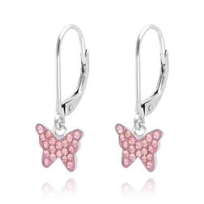 Mädchen Ohrringe 925 Sterling Silber - Schmetterling Mit Zirkonia Hängende Ohrhänger Für Kinder