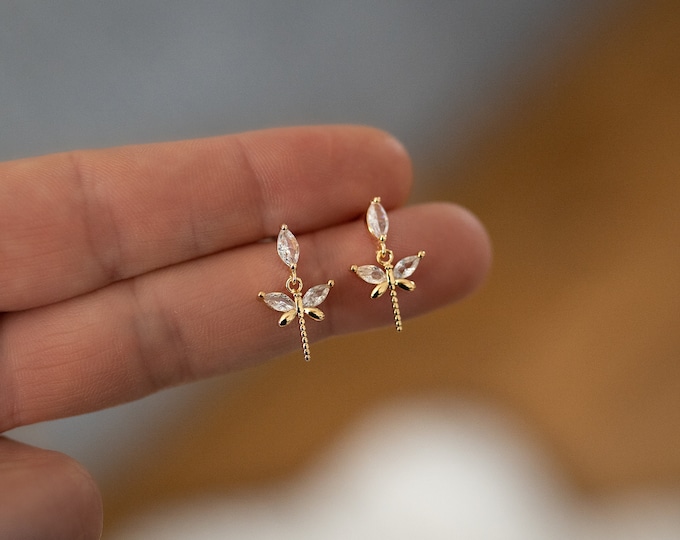 Libellen Ohrringe Aus 925er Sterlingsilber - Blaue Ohrhänger Mit Zirkonia