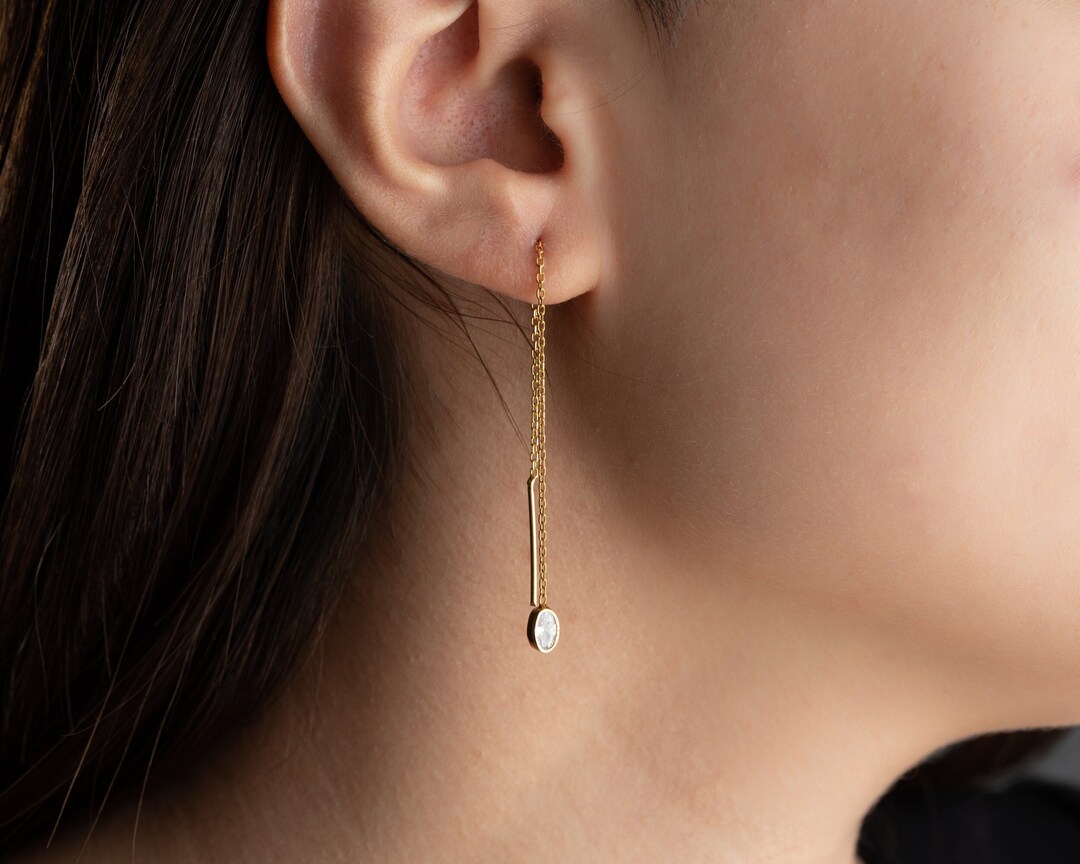 14K Gold Ohrringe Für Frauen - Hypoallergene Spiral Threader Hänger
