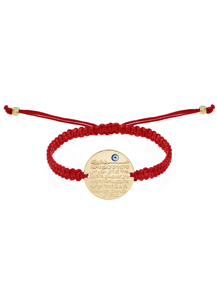 Remi Bijou Ohrringe Mit Ayetel Kürsi Gravur - Nazar Boncuk Blauem Auge Gold 3,7cm