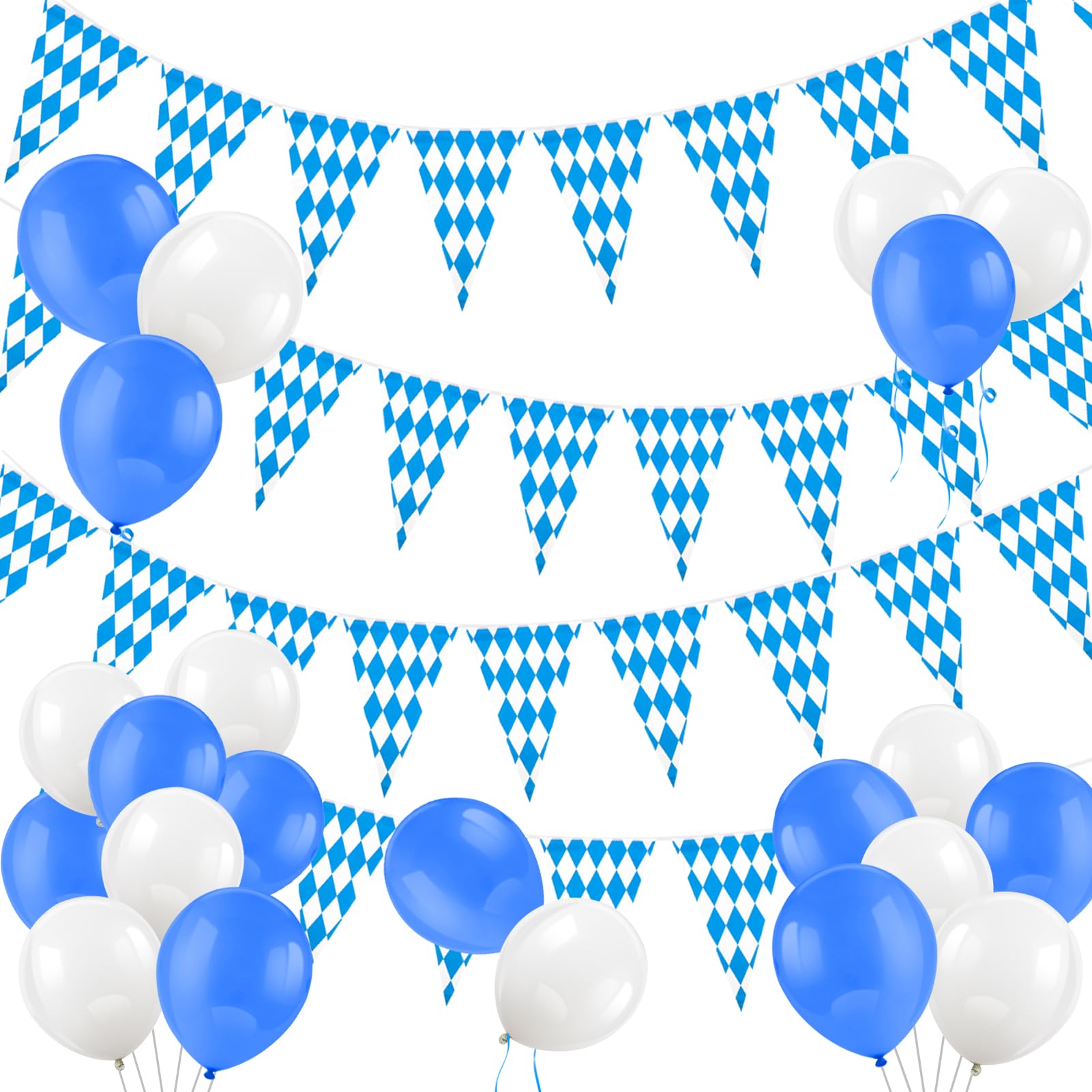 Oktoberfest Wimpelkette 40m Blau/Weiß - Bayerische Deko Für Garten & Bierzelt