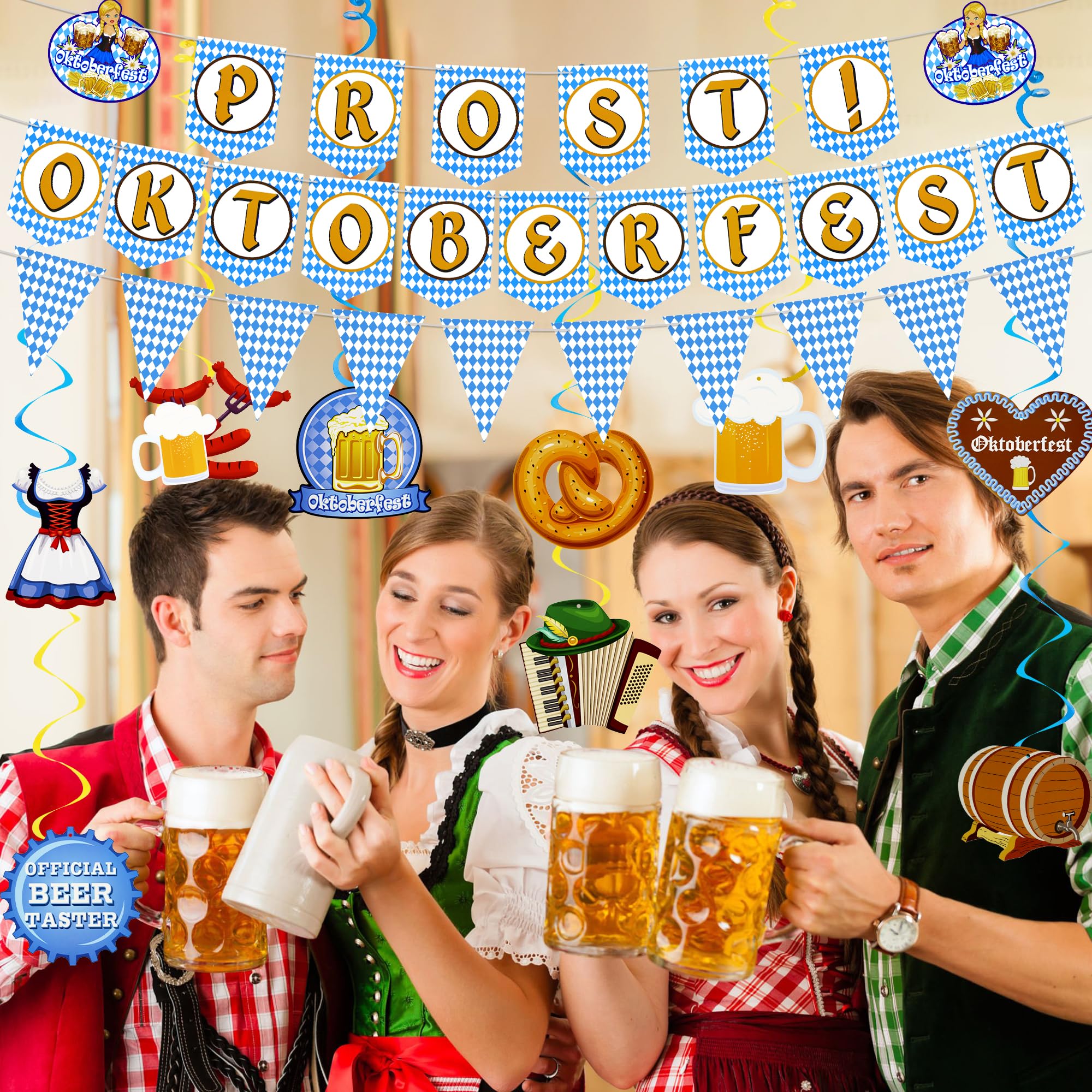 Na, hast du schon die passende Deko für deine Wiesn-Party? Mit dieser authentischen Oktoberfest-Wimpelkette in den bayerischen Farben Blau und Weiß holst du dir das echte Oktoberfest-Feeling direkt nach Hause! Die 40 Meter lange Girlande besteht aus 4 einzelnen 10-Meter-Ketten mit je 20 Fahnen - das reicht für eine richtig große Feier. Jede Fahne misst 30,5 x 19 cm und ist aus robustem PE-Material, das nicht nur wasserfest ist, sondern auch nicht so schnell reißt oder verblasst. Perfekt für drinnen und draußen - ob im Garten, im Bierzelt oder in der Wohnung. Die Installation ist total einfach: Die Fahnen sind schon am Seil festgenäht, also einfach aufhängen und fertig! Damit wird jede Bayern-Party, jedes Bierfest oder Familienfest zum echten Erlebnis. Übrigens: Die Wimpelkette lässt sich super mit anderer Oktoberfest-Deko kombinieren und kann nach der Party einfach zusammengefaltet und fürs nächste Jahr aufbewahrt werden. So macht Feiern richtig Spaß!