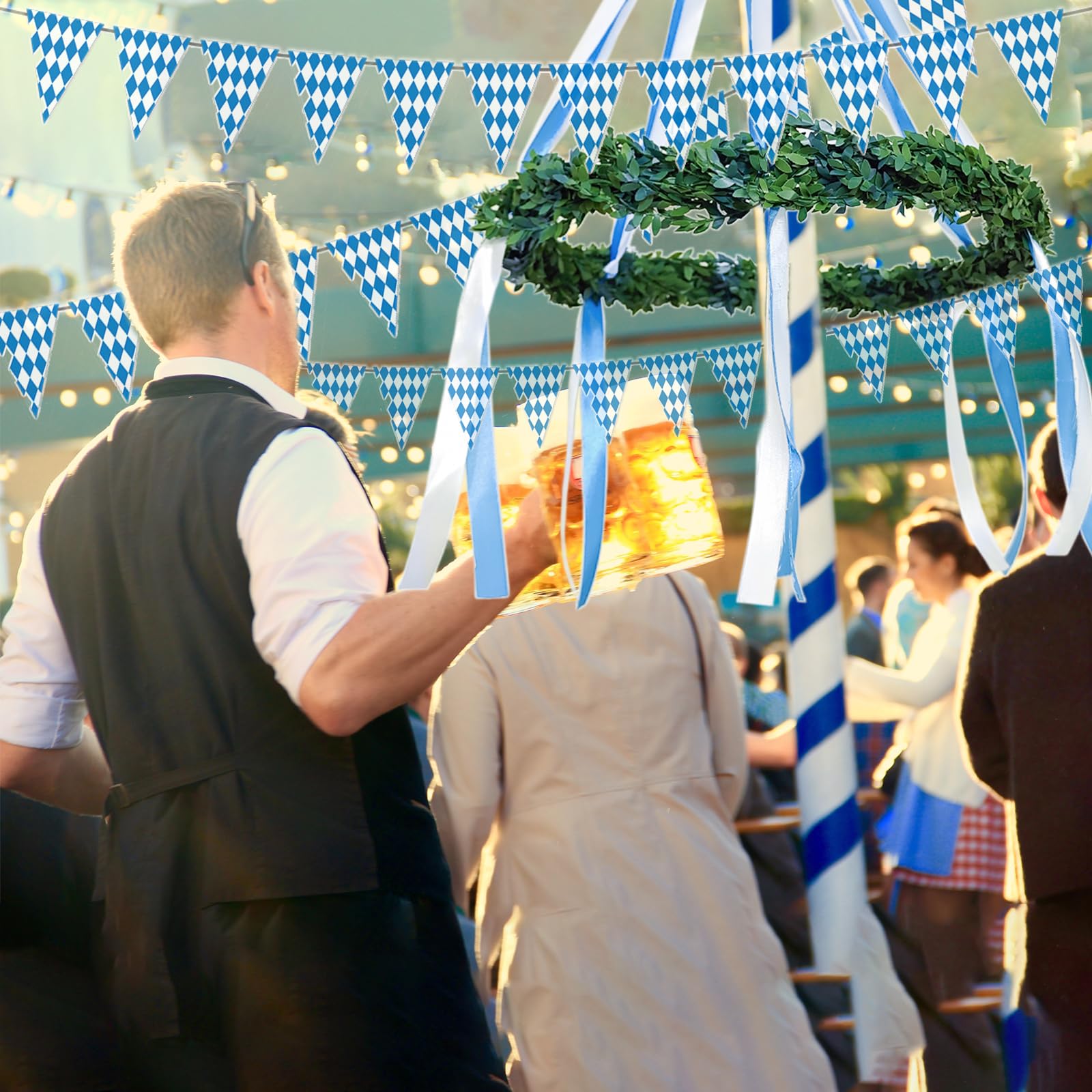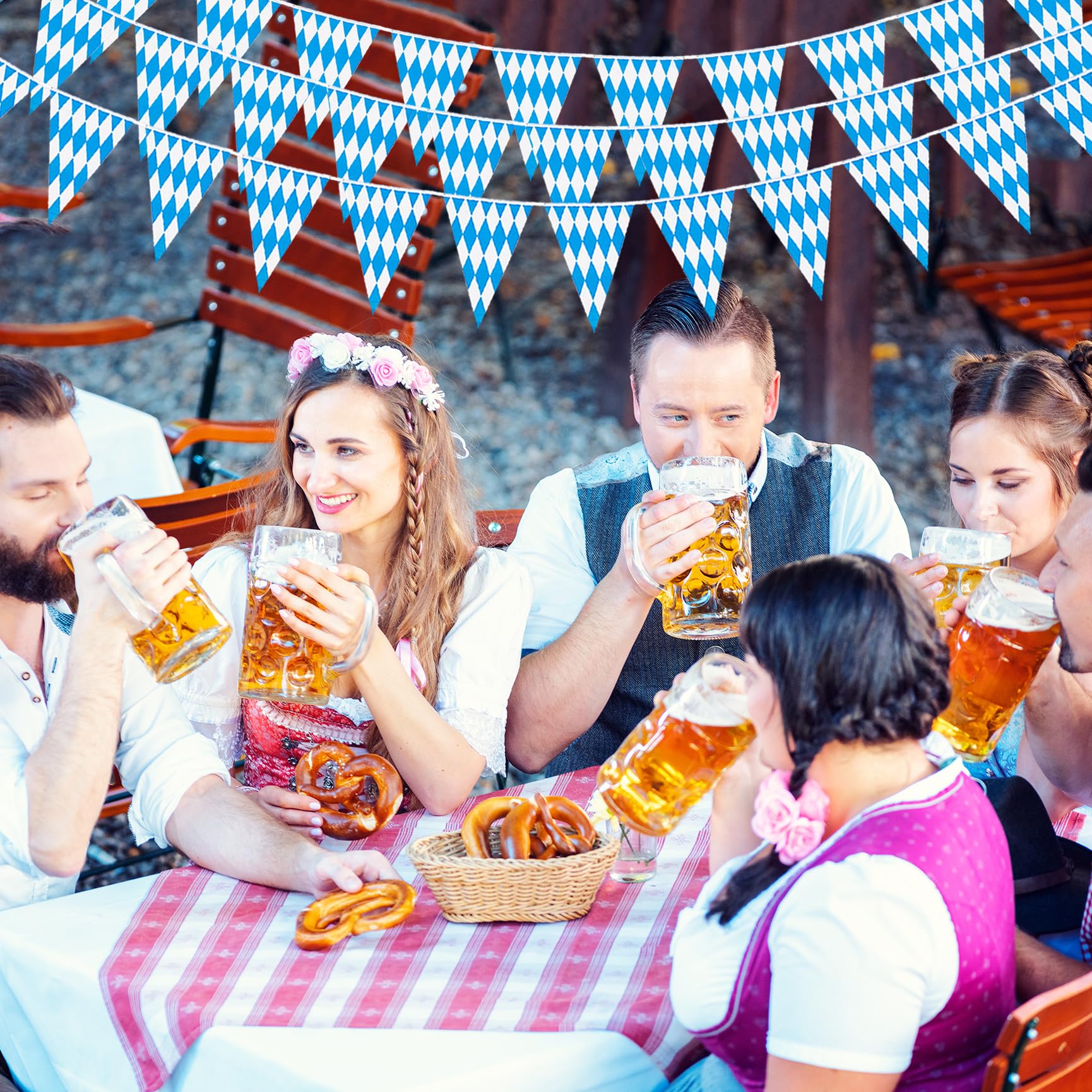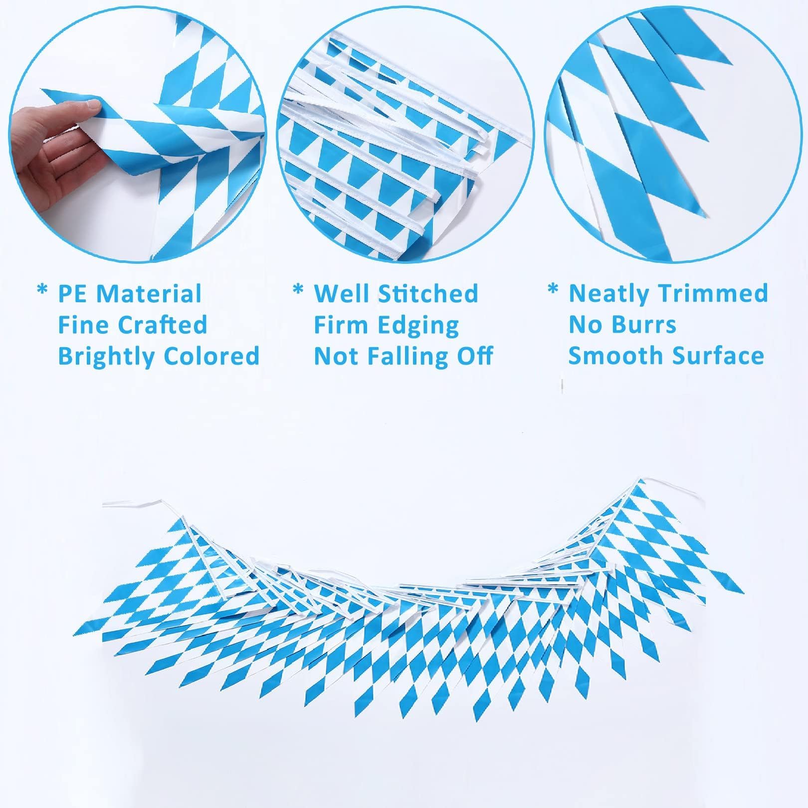 Oktoberfest Wimpelkette Blau-Weiß - 30m Girlande Für Bayrische Partys