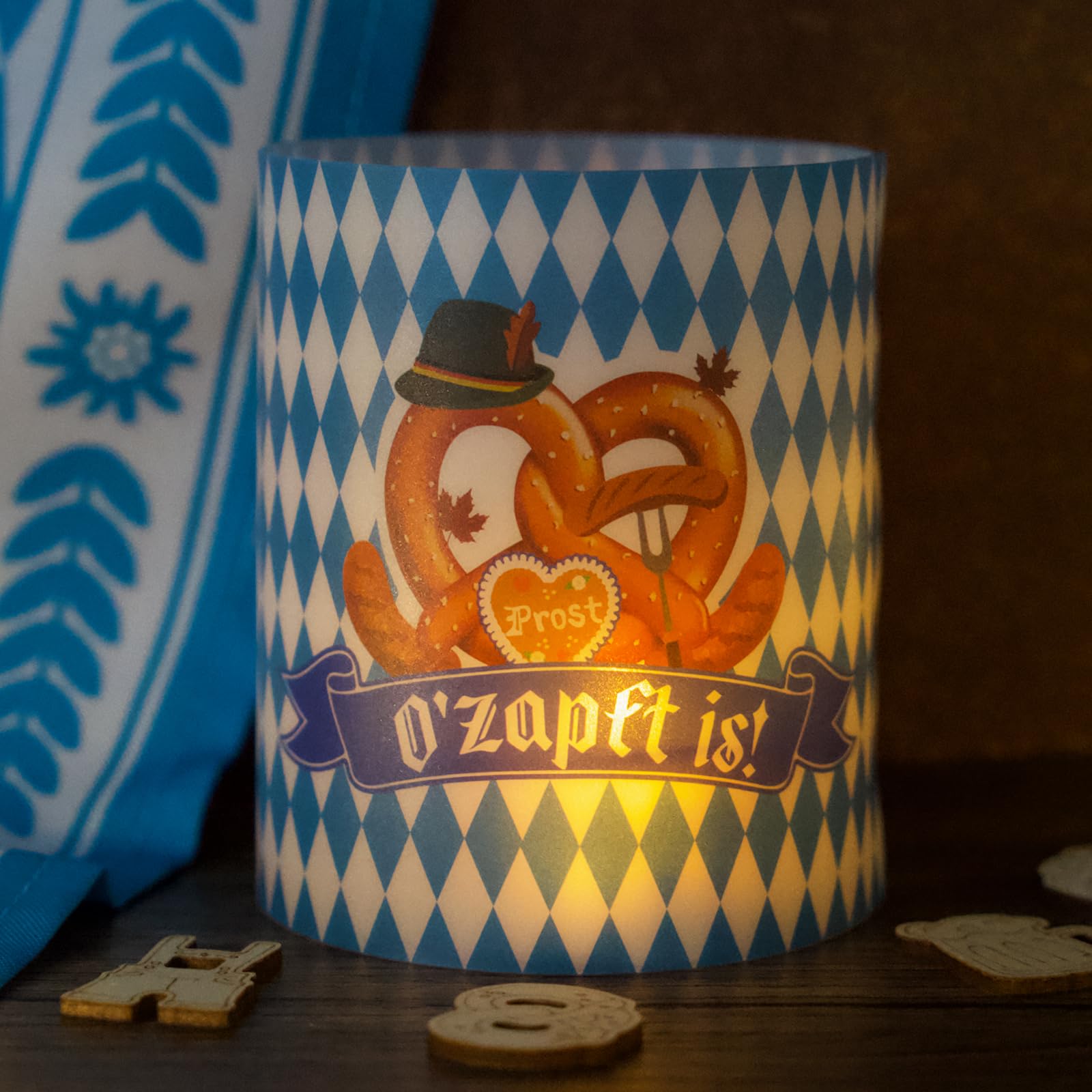 Oktoberfest-Fans, diese Windlichter sind ein Muss für eure Wiesn-Party! 12 Stück im Set, blau-weiß mit klassischen Motiven: 'O'zapft is', 'Prost', Bierkrüge und Brezeln! Aus stabilem PP-Material, Farben bleiben kräftig! Ungefaltet 26x10cm, gefaltet 10x8cm - platzsparend zu lagern! Einfach Teelichter reinstellen (nicht im Lieferumfang!) und gemütliches Licht genießen! Perfekt für Tischdeko, Theken oder als Raumdekoration! Schafft sofort Wiesn-Atmosphäre! Für Oktoberfest-Partys, Bierfeste oder bayrische Events! Einfach aufstellen und die Party kann beginnen! Macht jede Feier zum Oktoberfest-Erlebnis!