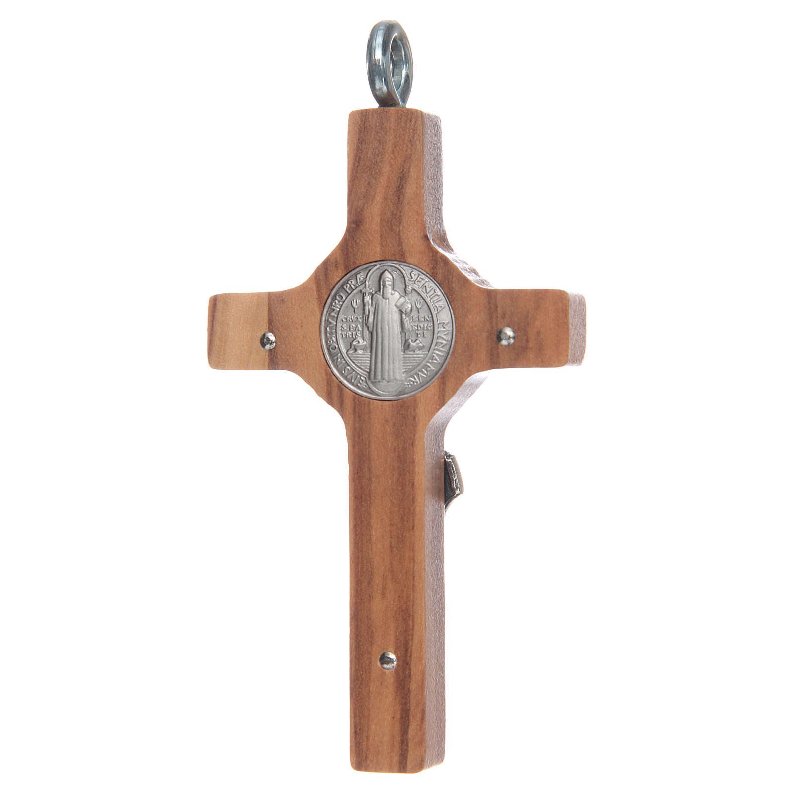 Kreuz Des Heiligen Benedikt Aus Olivenholz - 8 Cm Mit Medaille & Ring