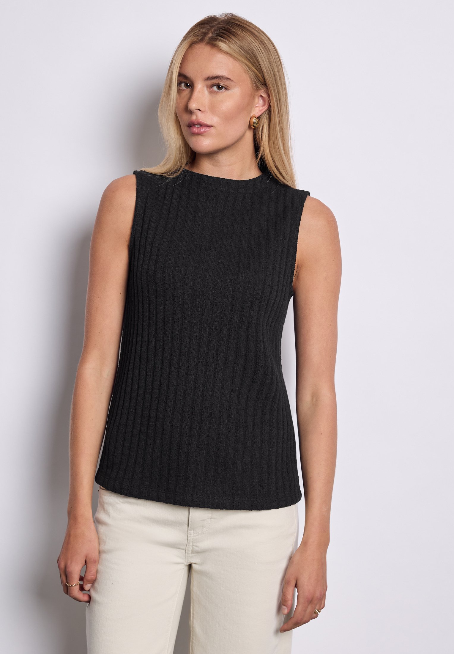 Street One Damen Top Silk-Look Rippstruktur - Ärmellos Turtleneck
