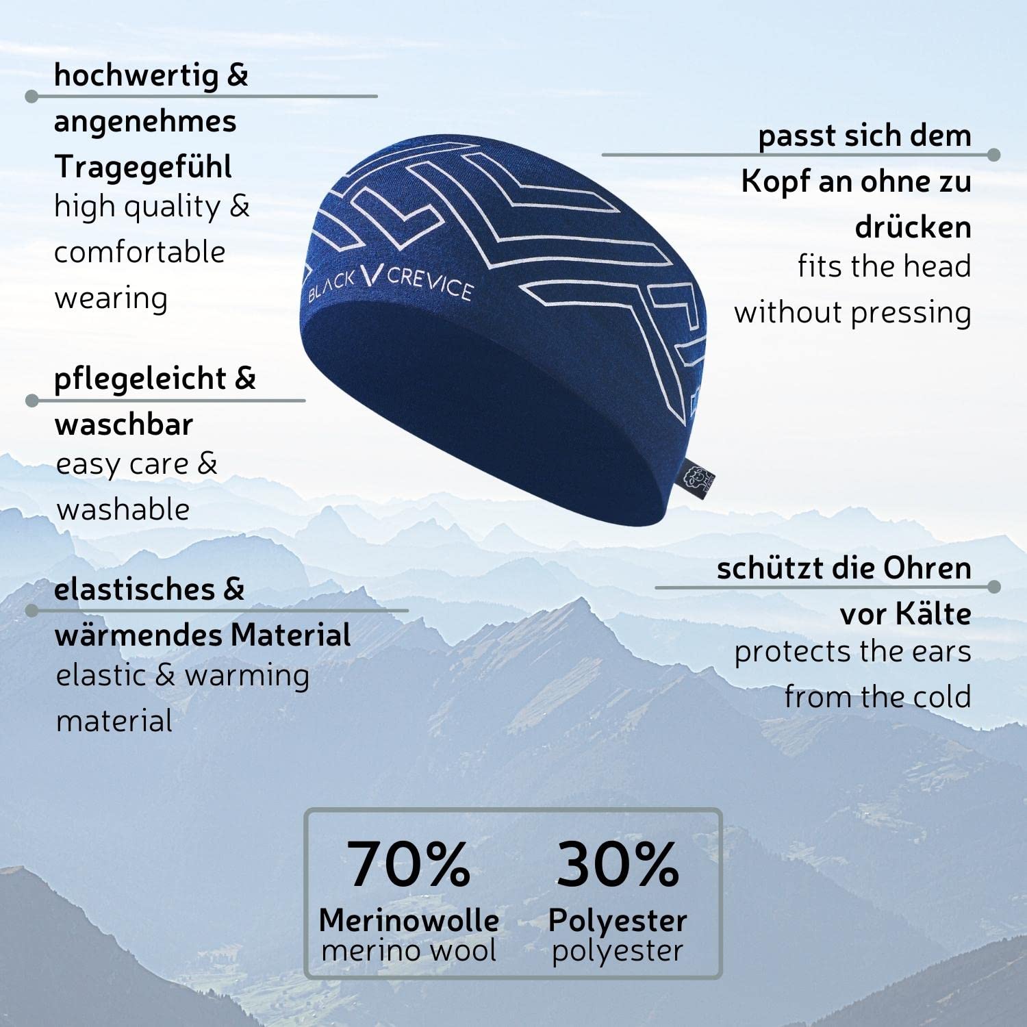 BLACK CREVICE Merino Stirnband One Size - Unisex Winter Headband Für Sport