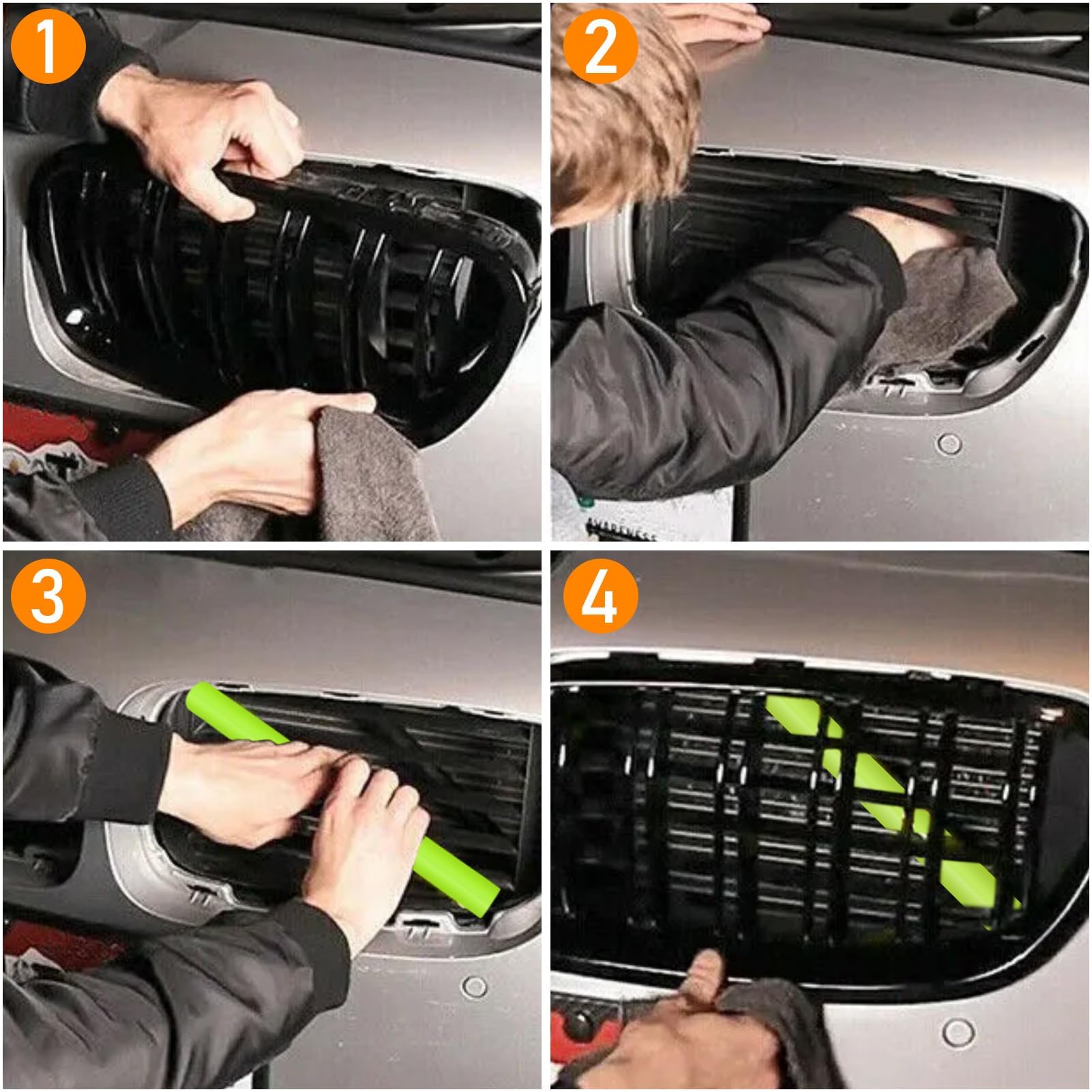Willst du deinem BMW einen individuellen Look verpassen? Diese Kühlergrill-Einsätze von ontto sind genau das Richtige! Die Streifen gibt's in verschiedenen Farben (hier in Blau) und sie passen perfekt für BMW X3 F25/G01, X4 F26/G02, X5 E70/F15/F85/G05, X6 E71/F16/F86/G06 und X7 G07. Hergestellt aus hochwertigem ABS-Kunststoff und PVC, sind die Einsätze korrosionsbeständig, hitzebeständig und lichtecht. Das geniale Snap-On-Design macht die Installation super einfach - kein Kleber nötig! Einfach den originalen Kühlergrill mit einem Schraubendreher öffnen und die Einsätze auf die Schutzhalterung des Wassertanks setzen. Schon sieht dein BMW viel sportlicher und individueller aus! Die Einsätze schützen nicht nur optisch auf, sondern bewahren deine Frontpartie auch vor Staub, Wasser und kleinen Steinchen. Im Lieferumfang sind 2 Stück enthalten - also für beide Seiten des Grills. Egal ob du deinen Daily Driver aufwerten willst oder deinen BMW für Shows vorbereitest - mit diesen Grill-Einsätzen machst du definitiv was her! Ein einfaches Upgrade mit großer Wirkung für deinen BMW!