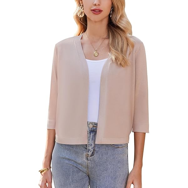 Kyzoeyou Damen Bolero Strickjacke - Elegante Open Knit Cardigan Mit 3/4 Ärmeln