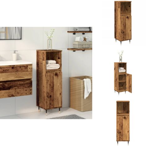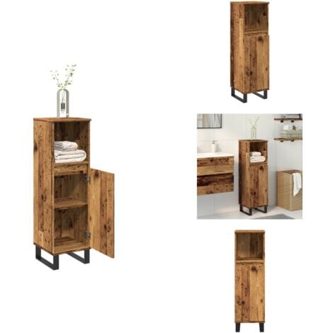 Dieser Badezimmer-Schrank in Altholz-Optik bringt rustikalen Charme in dein Bad! Mit den Maßen 80x33x60cm bietet er ordentlich Stauraum für all deine Hygieneartikel, Make-up, Handtücher und Bad-Utensilien. Die gealterte Holzoberfläche in Braun sieht total authentisch aus und die stabilen Eisenbeine geben zusätzlichen Halt. Mit einer Tür die sich leicht öffnen und schließen lässt - perfekt um Unordnung schnell zu verstecken. Der rechteckige, schlanke Design passt auch in kleinere Badezimmer und nutzt den Platz optimal aus. Aus Holzwerkstoff gefertigt - stabil und langlebig. Montage erforderlich (am besten zu zweit), aber mit beiliegender Anleitung und allen Schrauben machbar. Verleiht deinem Badezimmer sofort diesen gemütlichen, landhausartigen Charakter. Praktisch und dekorativ zugleich - was will man mehr? Perfekt um Cremes, Shampoos, Rasierer und all den anderen Kram ordentlich zu verstauen. Endlich mehr Ordnung im Bad mit diesem stylischen Schrank!