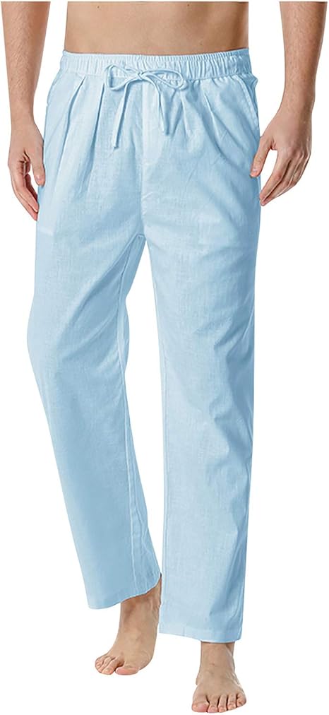 Die perfekte Hose für den Sommer! Super bequem und lässig - genau das, was du an warmen Tagen brauchst. Mit elastischem Bund und Knopf, sitzt wie angegossen ohne zu zwicken. Aus weicher Baumwollmischung, fühlt sich an wie Leinen - leicht und atmungsaktiv. Gerade Beine für den klassischen Look, mit schrägen Taschen und Gesäßtaschen. Perfekt für Strand, Yoga, Reisen oder einfach nur gemütlich zu Hause. Kombinier sie mit T-Shirt, Hemd oder Polo - sie passt zu allem! Einfach in der Maschine waschbar. Deine neue Lieblingshose für den Sommer!
