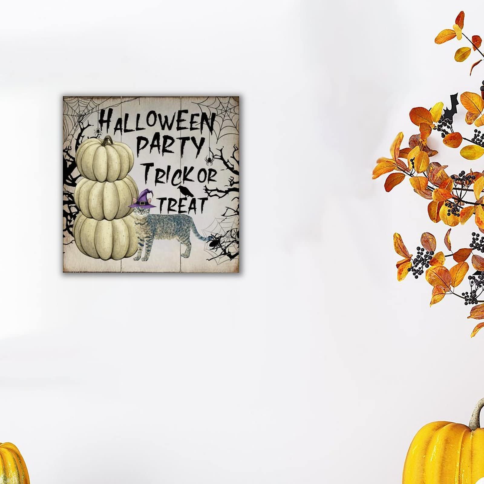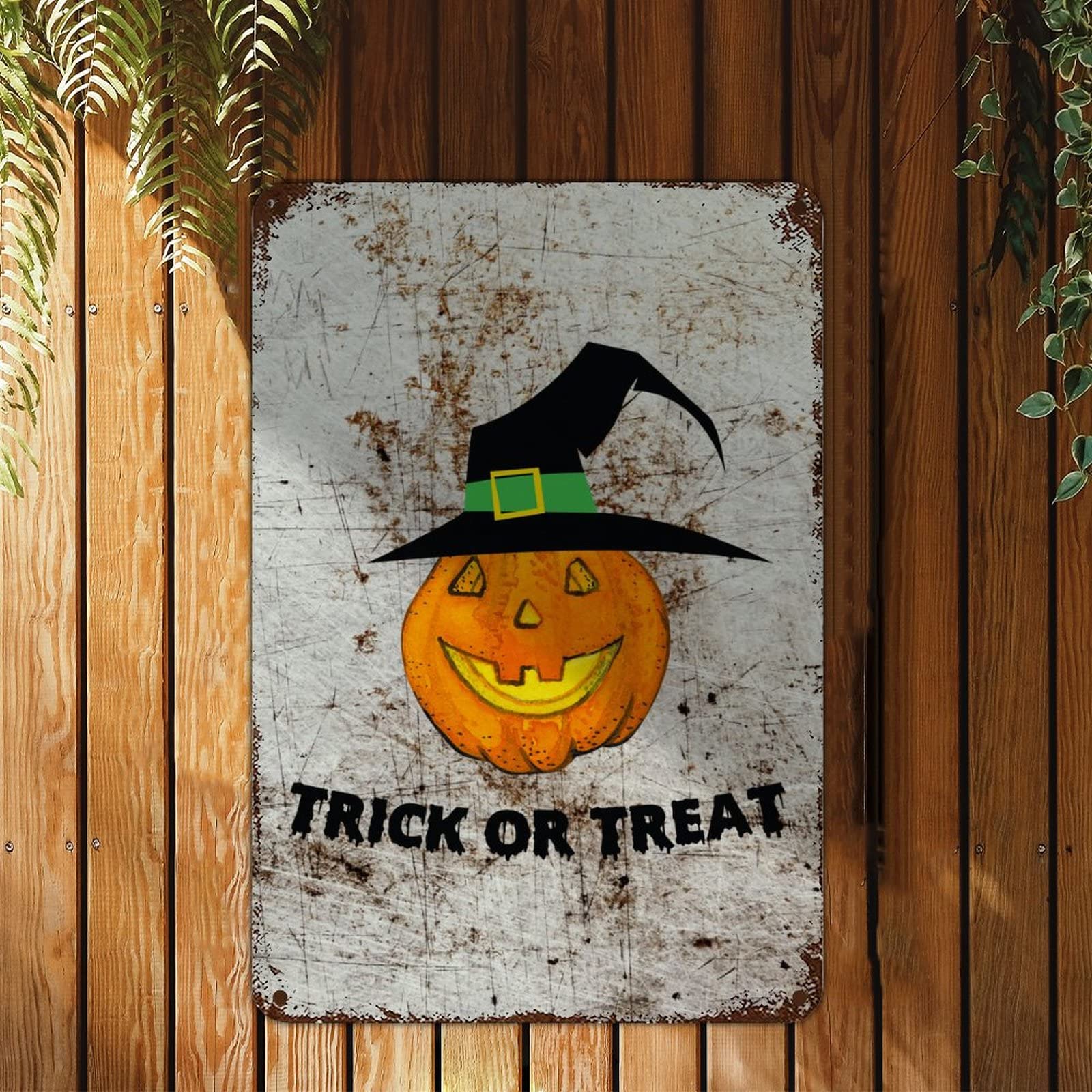 Halloween Holzschild 'Trick Or Treat' - Mit Kürbis & Spinne Deko