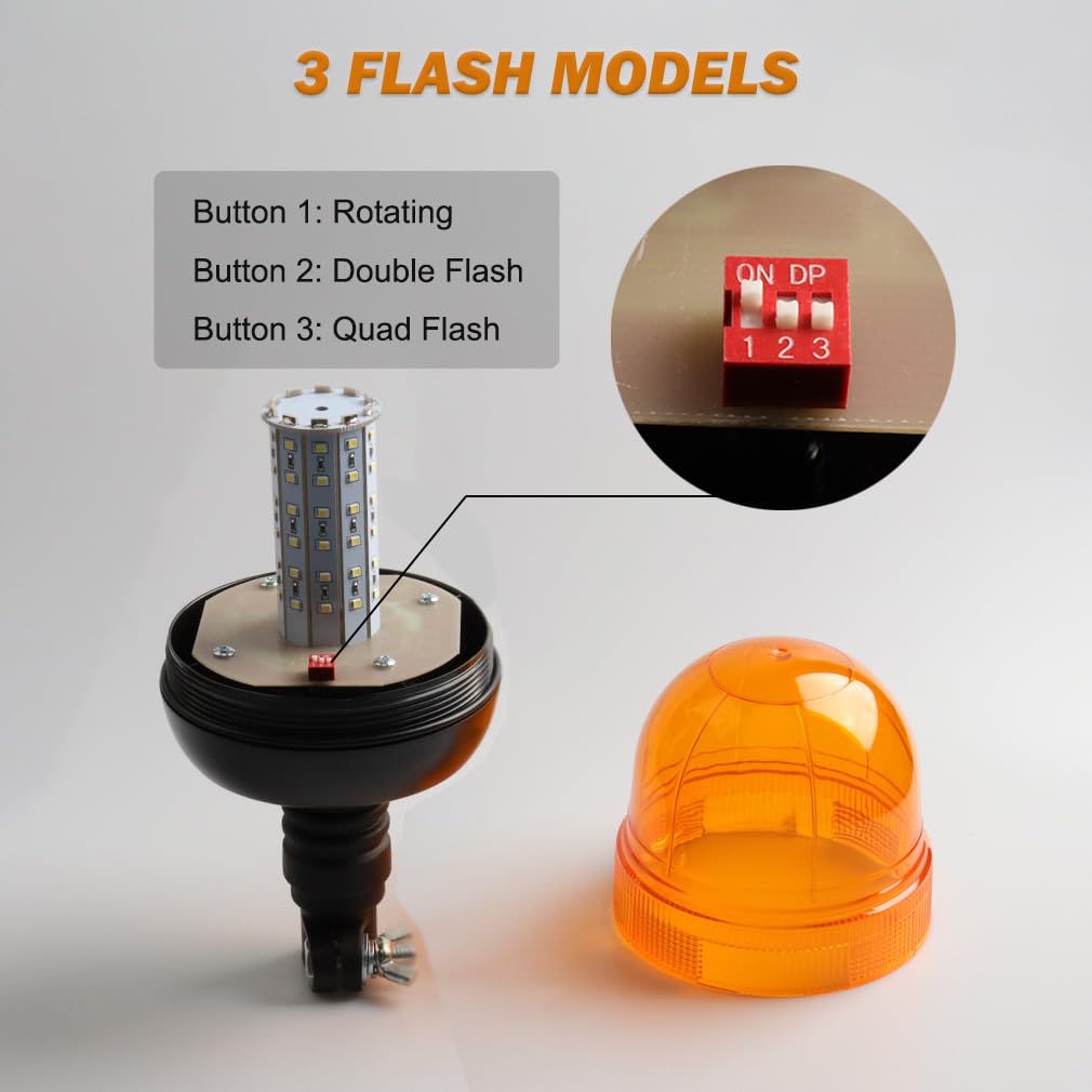 Hooma LED Rundumleuchte Orange | 12V/24V Für Traktoren | IP65 Wasserdicht Mit 5 Modi