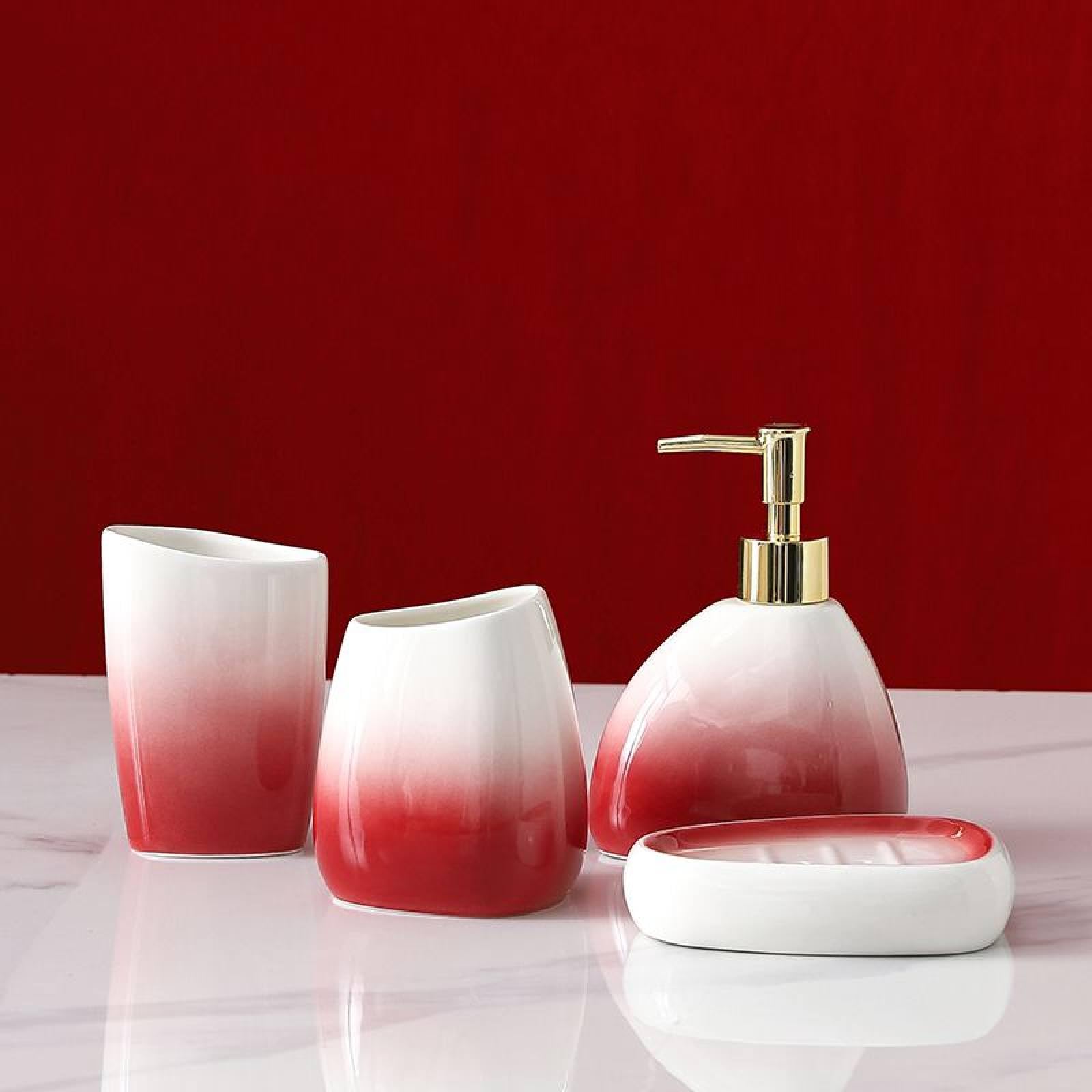 Badezimmer Set 4-tlg Orange | Keramik Zubehör Mit Zahnbürstenhalter & Seifenspender
