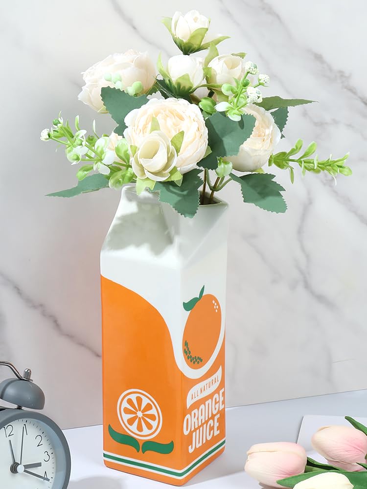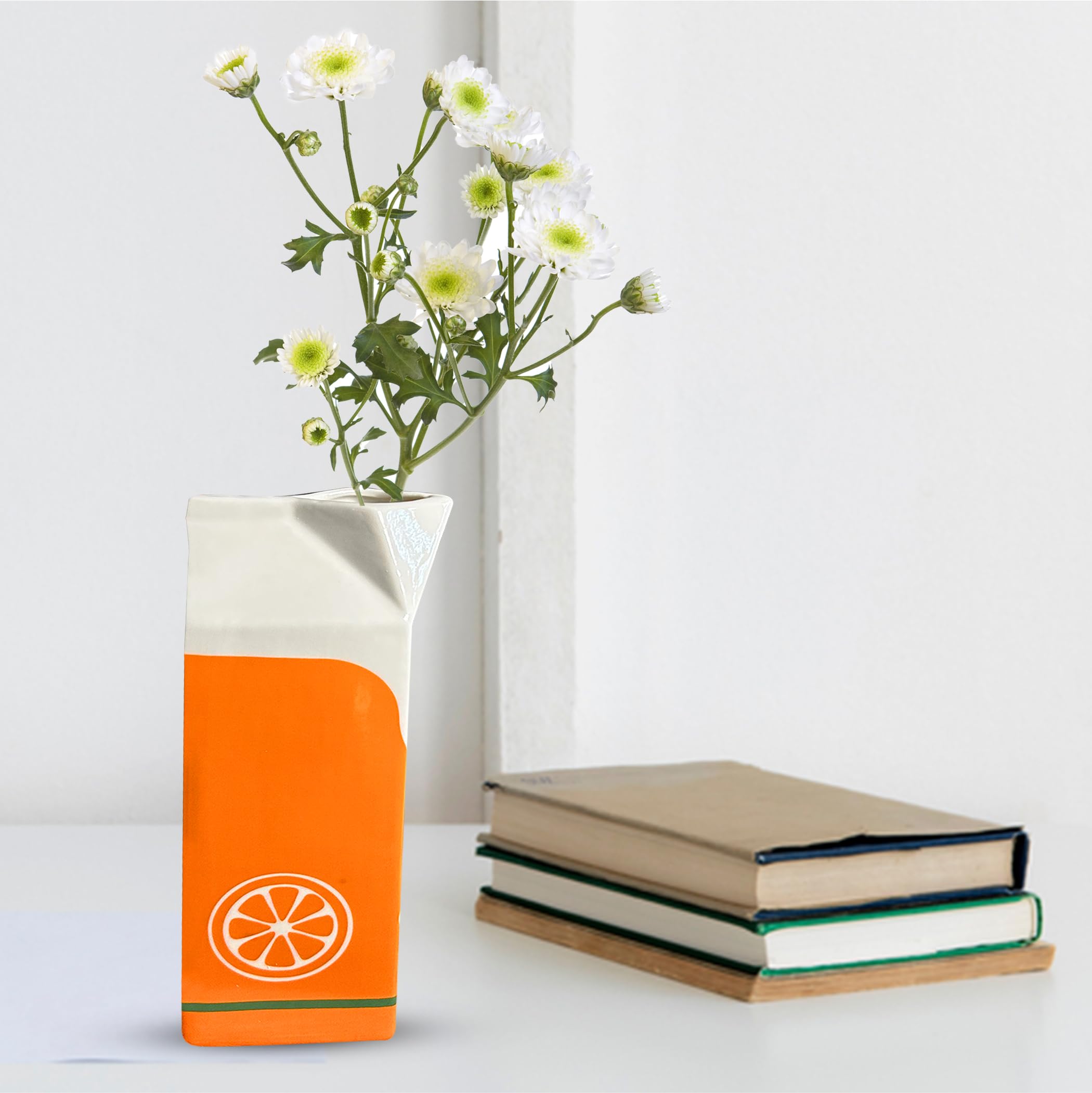 Wie cool ist das denn? Diese Vase sieht aus wie eine alte Orangensaft-Box! Aus hochwertiger Keramik gefertigt, ist sie ein echter Hingucker in deinem Zuhause. Mit den Maßen 2.7x1.3x8.6 Zoll bietet sie genug Platz für frische oder Trockenblumen. Stell sie ins Wohnzimmer, in die Küche oder ins Büro - überall sorgt sie für gute Laune. Ein witziges Geschenk für Freunde, die etwas Besonderes suchen. Achtung: Nur zur Deko, nicht als Trinkgefäß nutzen!