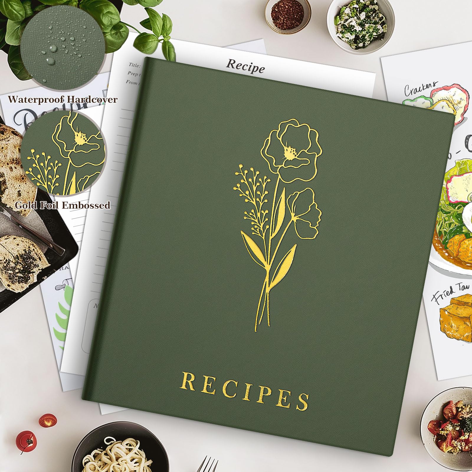 Lanpn Rezepte Ordner - DIY Kochbuch Zum Selberschreiben - Mit 60 Hüllen & 8 Trennblättern - 3-Ring-System
