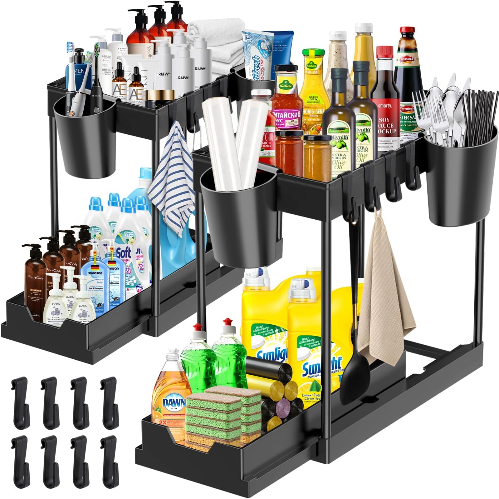 Hanured Unter Waschbecken Organizer 2-teilig - Ausziehbare Schrank Schubladen