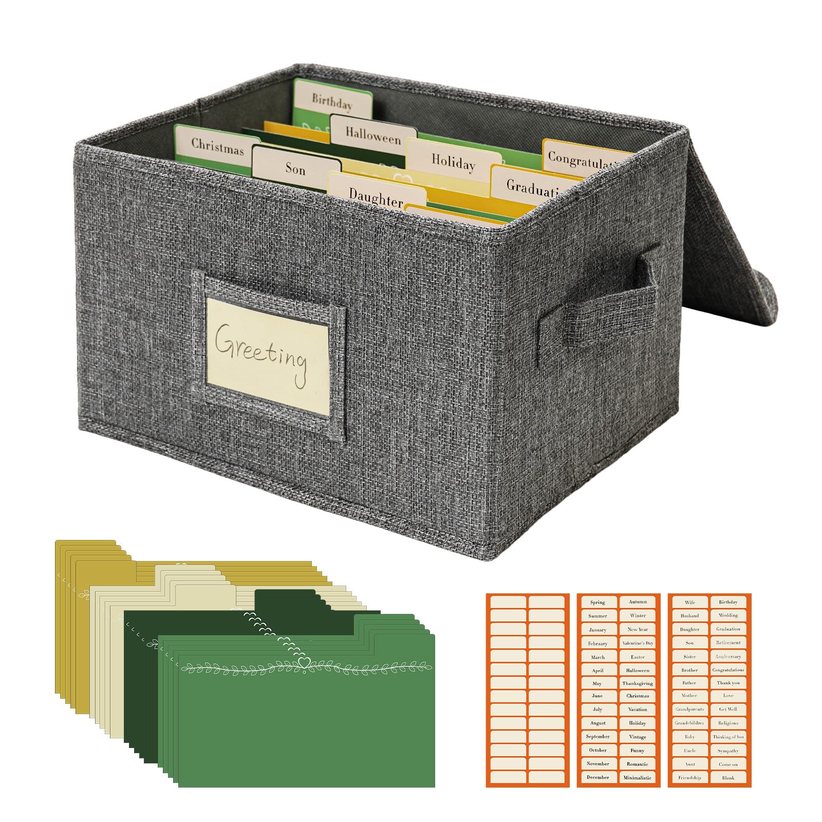 Endlich Ordnung im Karten-Chaos! Diese beiden beigen Organizer-Boxen sind perfekt für alle, die Grußkarten, Fotos oder Umschläge sammeln. Jede Box ist 26x20x16cm groß und fasst über 150 Karten - also richtig viel Platz! Mit 20 verstellbaren Trennwänden kannst du alles perfekt sortieren. Dazu gibt's Marker und 84 Aufkleber (56 davon blanko) zum Beschriften. Aus hochwertigem Karton mit Leinen-Optik - sieht total edel aus! Super nicht nur für Karten, sondern auch für Rezepte, Fotos, Rechnungen oder Sammelsticker. Wenn du mal keinen Platz brauchst, klappst du die Boxen einfach zusammen. Die Griffe an den Seiten machen das Tragen leicht. Perfekt für alle, die gerne organisiert sind!