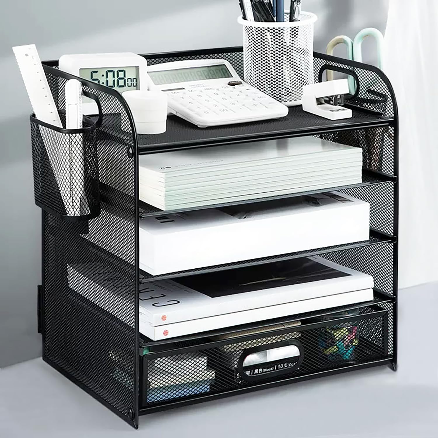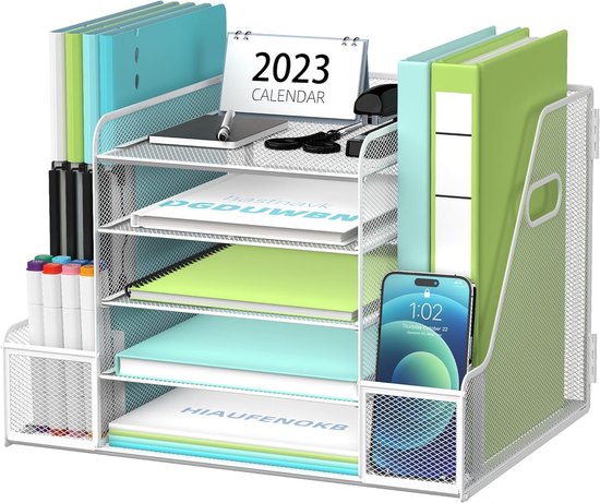 Wow, dieser SUPTIDY Schreibtisch-Organizer bringt richtig Ordnung auf deinen Arbeitsplatz! 5 Etagen - 4 abnehmbare Ablagen plus Stifthalter. Aus robustem Stahlgitter mit rutschfesten Füßen. Der Stifthalter kann an beiden Seiten befestigt oder separat verwendet werden. Mit praktischen Griffen zum leichten Transport. Perfekt für A4-Papier, Briefe, Rechnungen, Ordner - alles hat seinen Platz. Einfach zusammenzubauen, Schraubendreher inklusive. In blau, sieht modern aus und hält deinen Schreibtisch super organisiert!