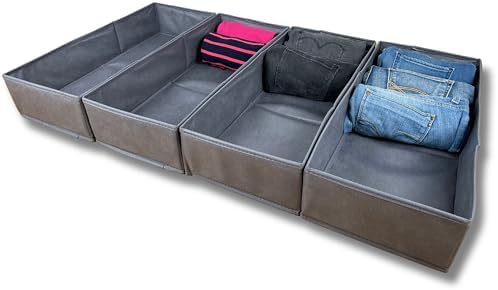 Endlich Ordnung in deinen Schubladen! Dieses praktische 8-teilige Set bringt System in deine Aufbewahrung. Enthalten sind 2 große Boxen (28×28×11,8cm) für Hemden und Hosen, 2 mittlere (28×14,5×11,8cm) für Unterwäsche und Dessous, sowie 4 kleine (14,5×14,5×11,8cm) für Socken und Accessoires. Aus weichem Vliesstoff - leicht, stabil und geruchsneutral. Super praktisch: Die Boxen sind faltbar! Einfach den Reißverschluss öffnen und platzsparend verstauen. Perfekt für Schubladen, Kleiderschränke oder Regale. Nicht nur für Kleidung geeignet - auch Spielzeug, Kosmetik oder Werkzeug lassen sich damit super organisieren. Die atmungsaktive Struktur hält deine Sachen frisch und das große Öffnungsdesign ermöglicht einfachen Zugriff. Mach aus deinem Chaos eine ordentliche Wohlfühloase - ob im Schlafzimmer, Kinderzimmer oder Bad!