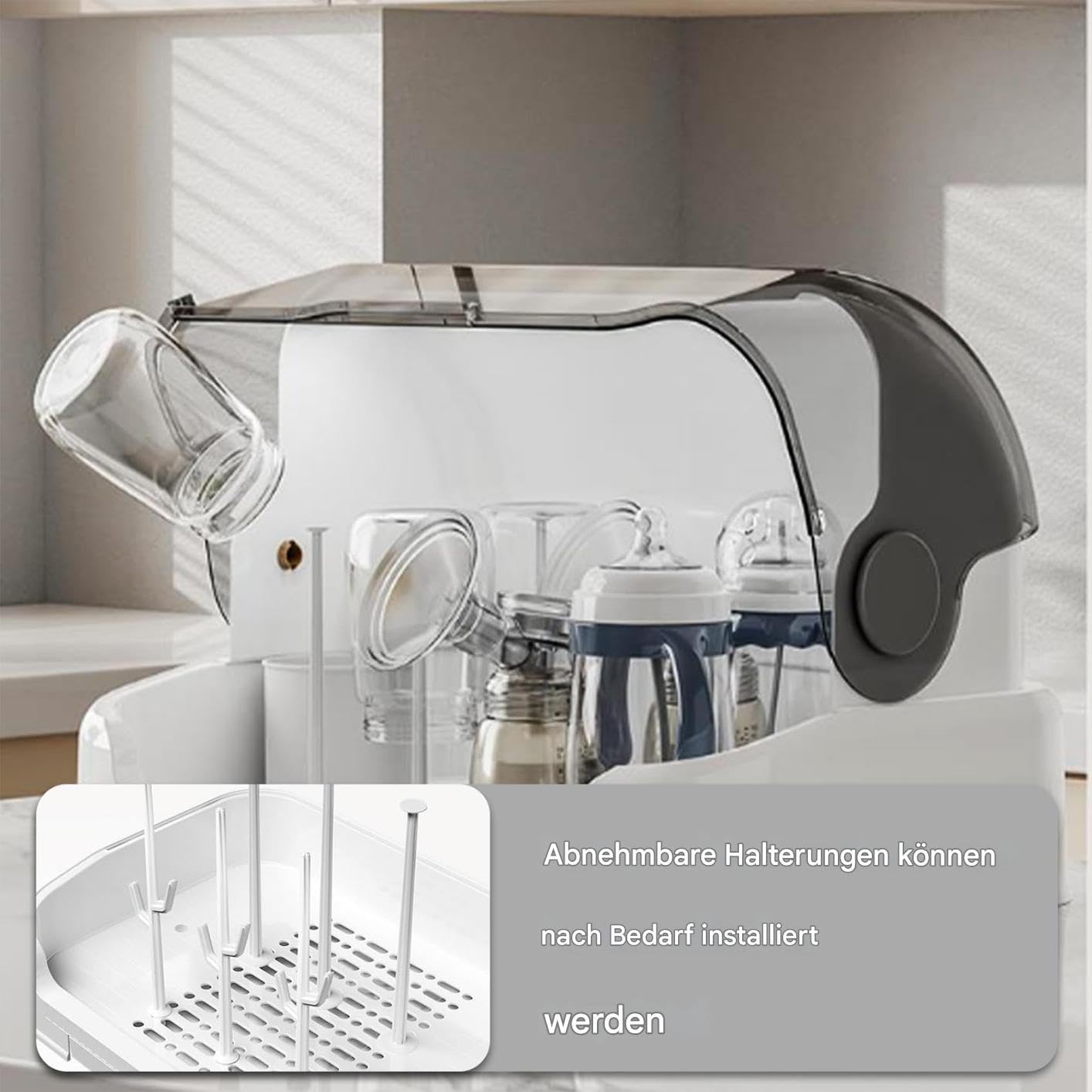 Endlich Ordnung im Baby-Chaos! Dieser praktische Flaschen-Organizer hält all deine Baby-Utensilien sauber und griffbereit. Mit integriertem Trockner und Ablauftasse - so sammelt sich kein Wasser und alles bleibt hygienisch trocken.