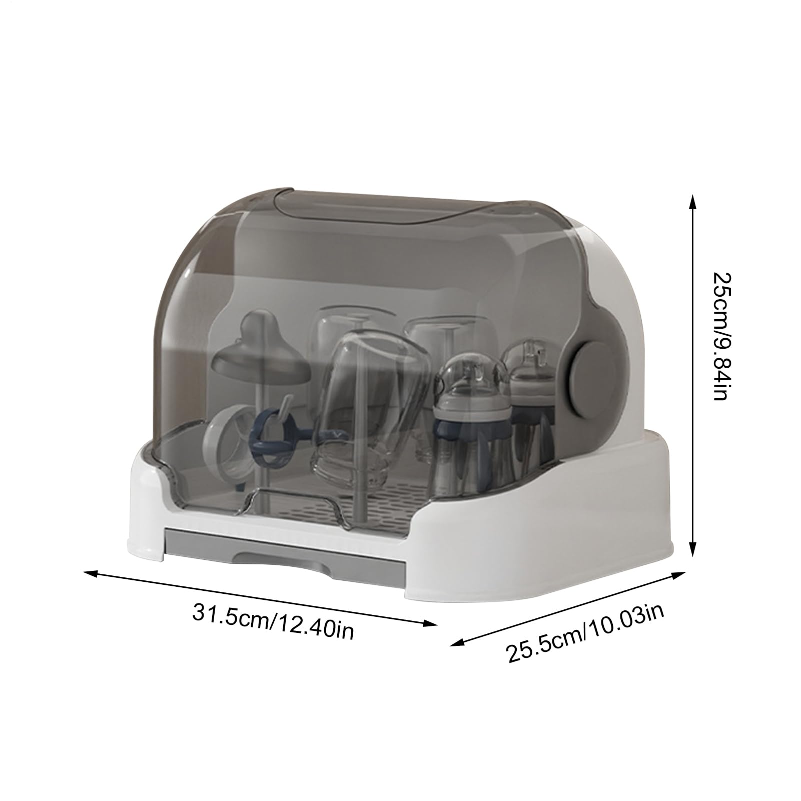Ob in der Küche, im Babyzimmer oder im Kühlschrank - dieser Organizer findet überall Platz. Die staubabweisende Konstruktion hält Flaschen und Zubehör sicher geschlossen.