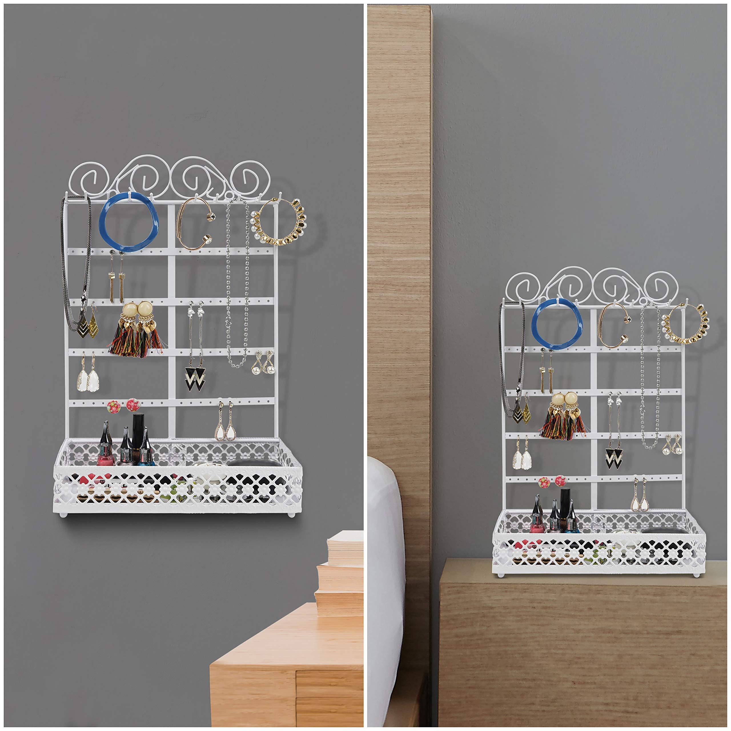 NIYANGLE Schmuckständer Weiß Mit Tablett - Organizer Für Halsketten, Armbänder & Ohrringe