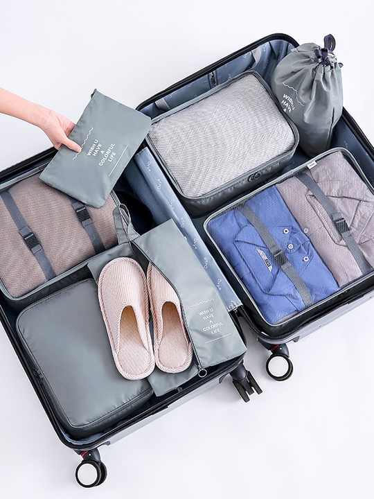 Endlich Ordnung im Koffer! Dieses praktische 6-teilige Organizer-Set macht das Packen zum Kinderspiel. Aus wasserdichtem Nylon mit robusten Reißverschlüssen - schützt deine Sachen vor Feuchtigkeit und Schmutz. Jedes Fach ist beschriftet, sodass du alles sofort findest. Besonders clever: Der Kleiderbereich lässt sich komprimieren und spart so viel Platz. Die transparenten Netze geben den Blick frei auf den Inhalt. Kann auch im Kleiderschrank verwendet werden - super praktisch! Perfekt für Geschäftsreisen, Urlaub oder Camping. Nie wieder chaotisches Koffer-Chaos!