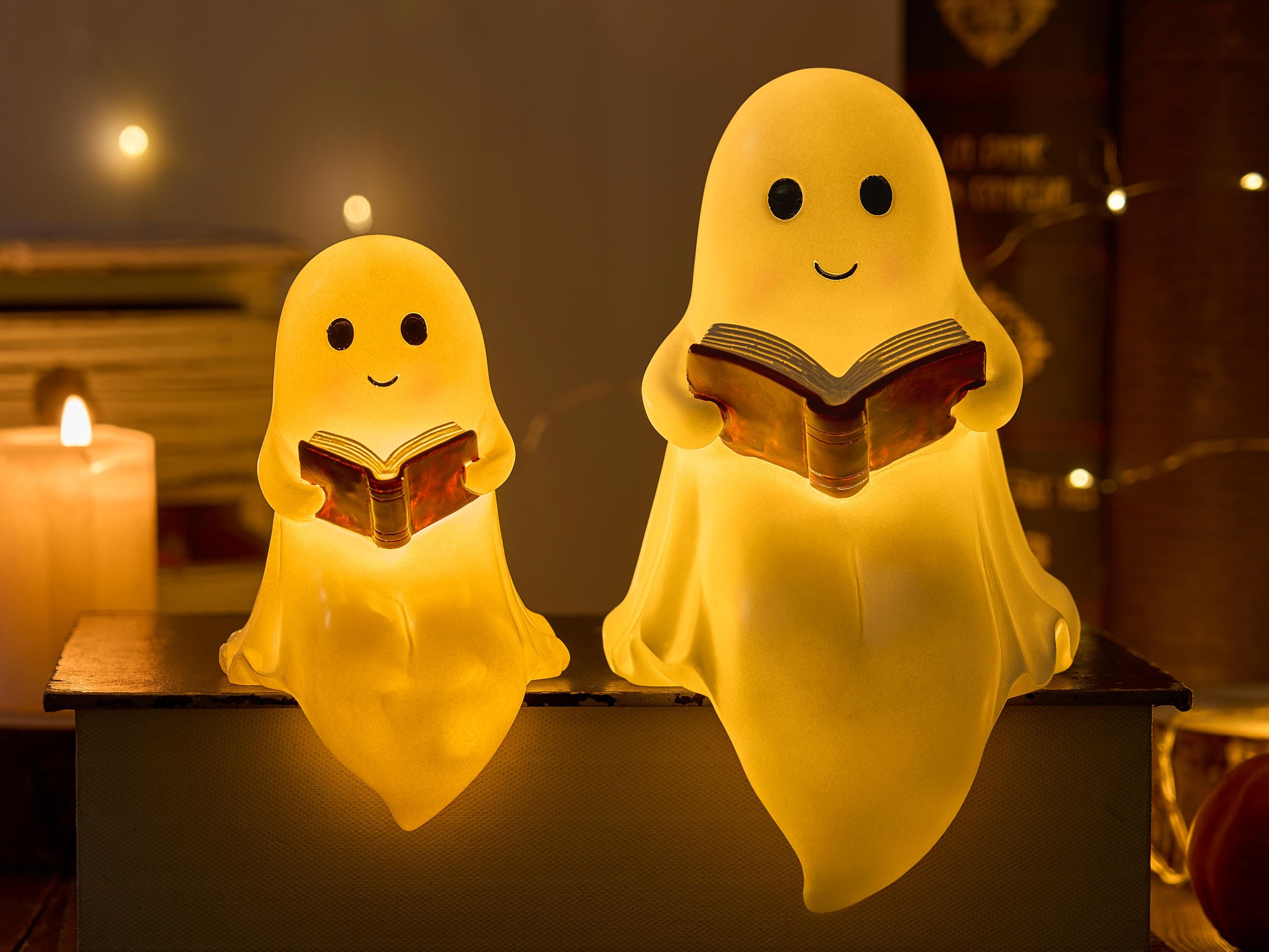 Boo! Dieses niedliche Geister-Nachtlicht bringt gruseligen Spaß in dein Zuhause! Die süßen Geister aus hochwertigem Harz leuchten in sanftem LED-Licht und schaffen eine magische Halloween-Atmosphäre. Mit den Maßen 15x12x12cm ist die Lampe kompakt genug für jeden Nachttisch, Sideboard oder als Deko-Stück im Regal. Perfekt fürs Kinderzimmer, Wohnzimmer oder Badezimmer - das sanfte Licht hilft auch gegen Angst im Dunkeln. Einfach mit 3 AA-Batterien betreiben (nicht im Lieferumfang) und den Schalter umlegen - mehr Aufwand ist nicht nötig. Ob als Halloween-Deko für die Party oder als ganzjähriger Hingucker - dieses Nachtlicht begeistert Groß und Klein. Ein fantastisches Geschenk für Halloween-Fans, Geister-Liebhaber oder einfach alle, die verspielte Dekorationen mögen. Gruselig niedlich und praktisch zugleich!