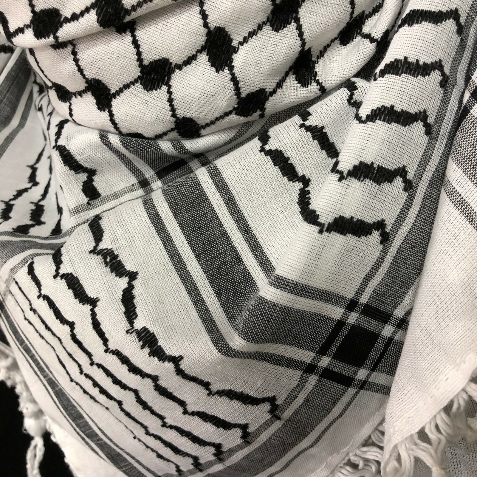 Ein Stück Kultur für deinen Style! Dieser authentische Shemagh-Schal im palästinensischen Design ist nicht nur ein modisches Accessoire, sondern auch ein Symbol der Solidarität. Hergestellt aus 100% Baumwolle, ist er angenehm zu tragen und vielseitig kombinierbar. Ob als Kopftuch, Halstuch oder Schultertuch - der 120x120 cm große Schal passt sich deinem persönlichen Stil an. Das klassische schwarz-weiße Muster ist zeitlos und passt zu vielen Outfits. Ein hochwertiges Stück, das Geschichte und Mode verbindet. Perfekt für alle, die nicht nur gut aussehen, sondern auch eine Botschaft tragen möchten!