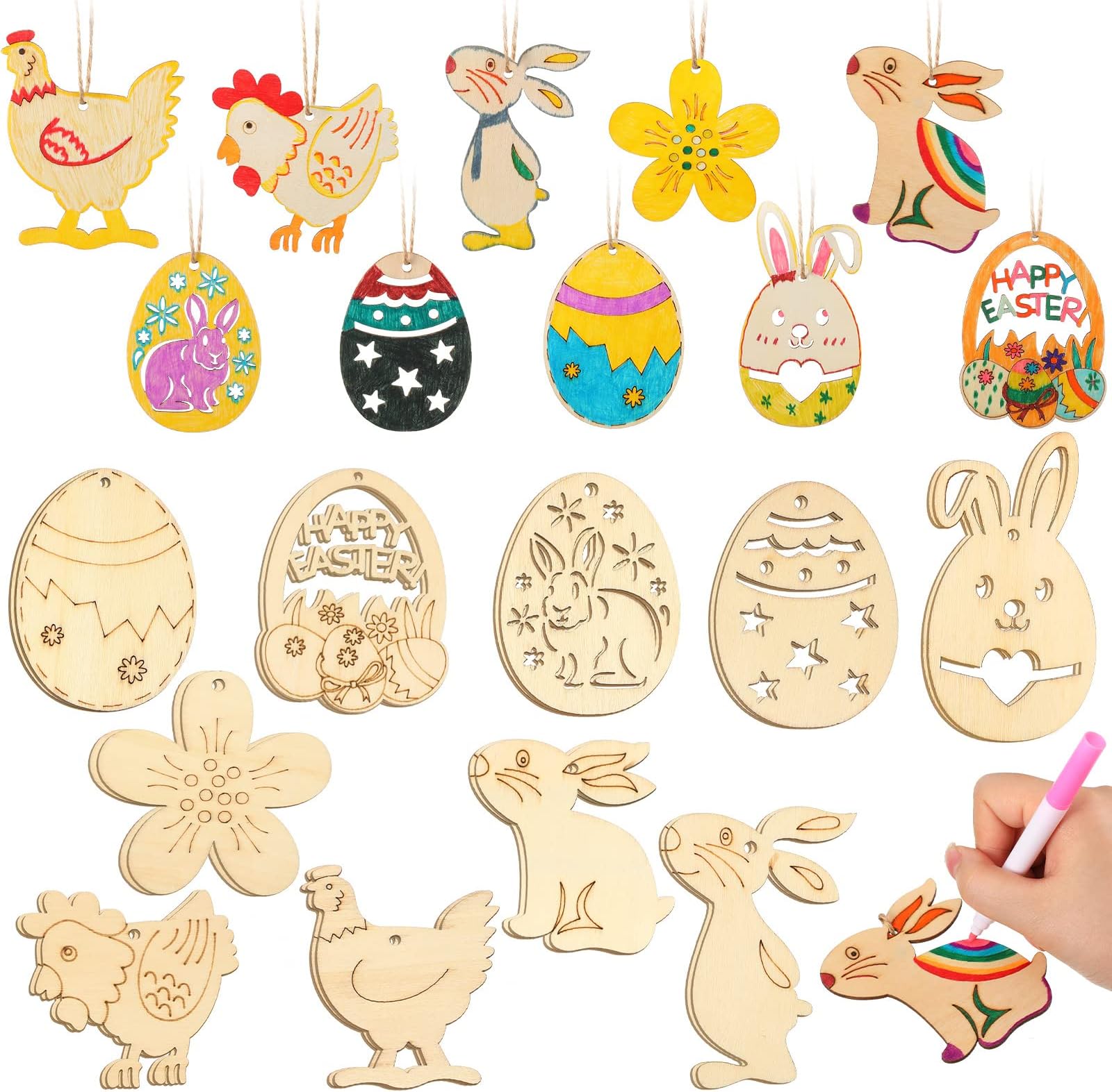 Oster-Bastelset Aus Holz - 40 Anhänger Mit Farbstiften Zum Bemalen