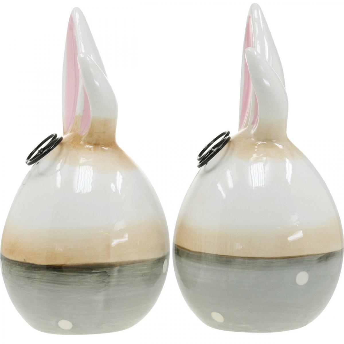 Com-four® Osterhasen Aufsteller 2-tlg. - Keramik Osterdeko 14cm & 19cm