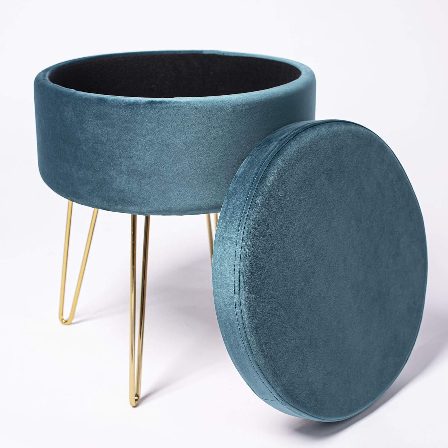 Runder Samt Ottoman Mit Stauraum - Beiger Fußhocker Mit Goldbasis