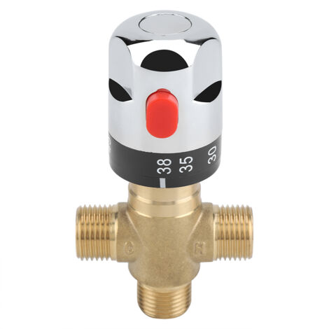 Perfekte Wassertemperatur für deinen automatischen Wasserhahn! Dieses Thermostat-Mischventil mischt heißes und kaltes Wasser genau nach deinen Wünschen. Aus massivem Messing - extrem langlebig und stabil. G1/2 Standardgewinde passt an die meisten Haushalts- und Gewerbeleitungen. Einfache Installation: Ein Anschluss für Kaltwasser, einer für Warmwasser, in der Mitte kommt das Mischwasser raus. Integrierte Rückschlagventile verhindern Rückfluss - keine Temperaturschwankungen mehr! Arbeitsdruck 0,05-0,5 MPa, für Warmwasser bis 85°C. Perfekt für Waschbecken, Duschen oder gewerbliche Anwendungen. Einfach am Handrad drehen und die ideale Temperatur einstellen - komfortabler geht's nicht!
