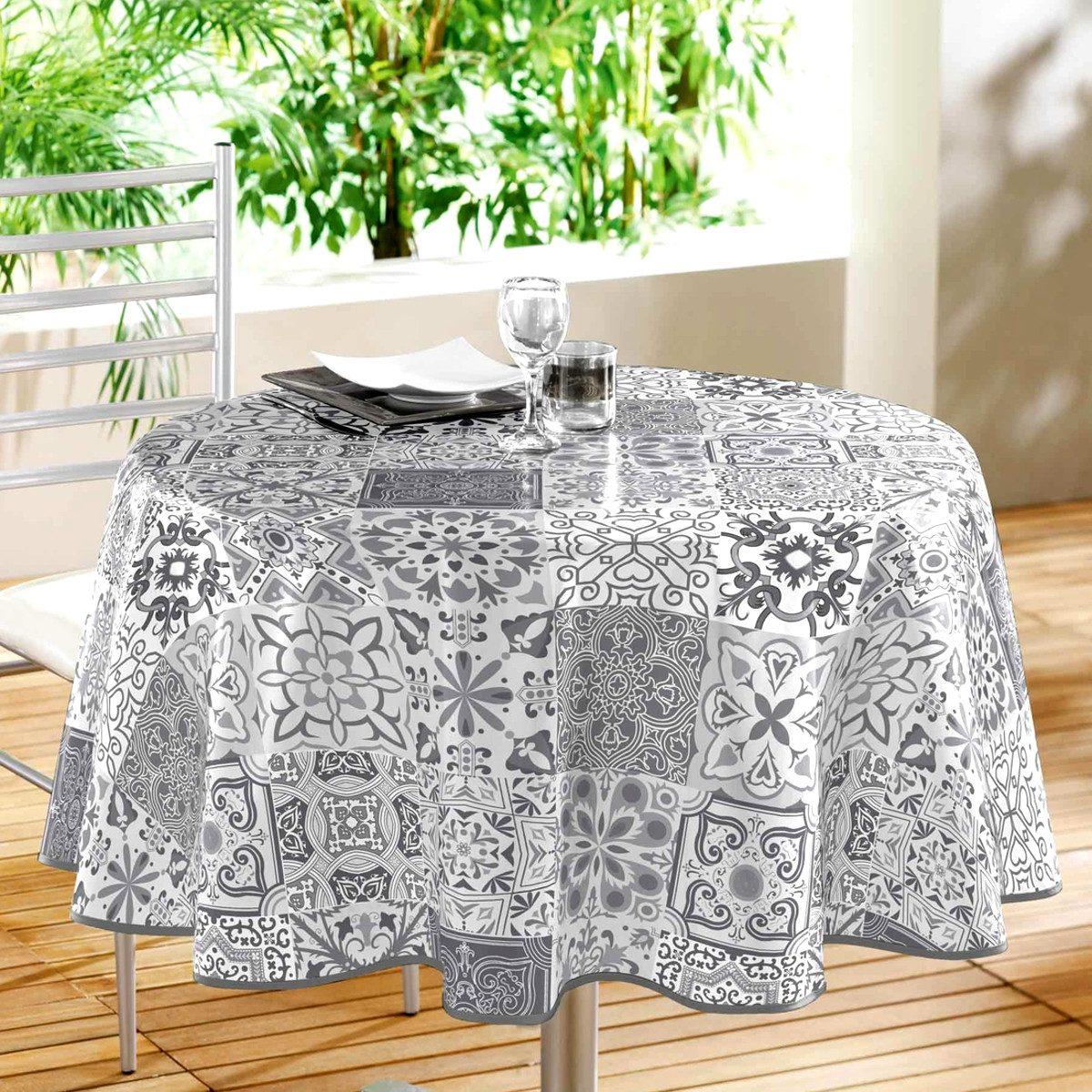 Ob gemütliches Grillen im Garten, ein Picknick im Park oder eine Party auf der Terrasse - mit dieser runden Outdoor-Tischdecke macht dein Tisch immer eine gute Figur! Die Decke ist aus robustem PVC gefertigt, komplett wasserdicht und leicht abwischbar. Ein feuchtes Tuch genügt, und sie ist wieder sauber.