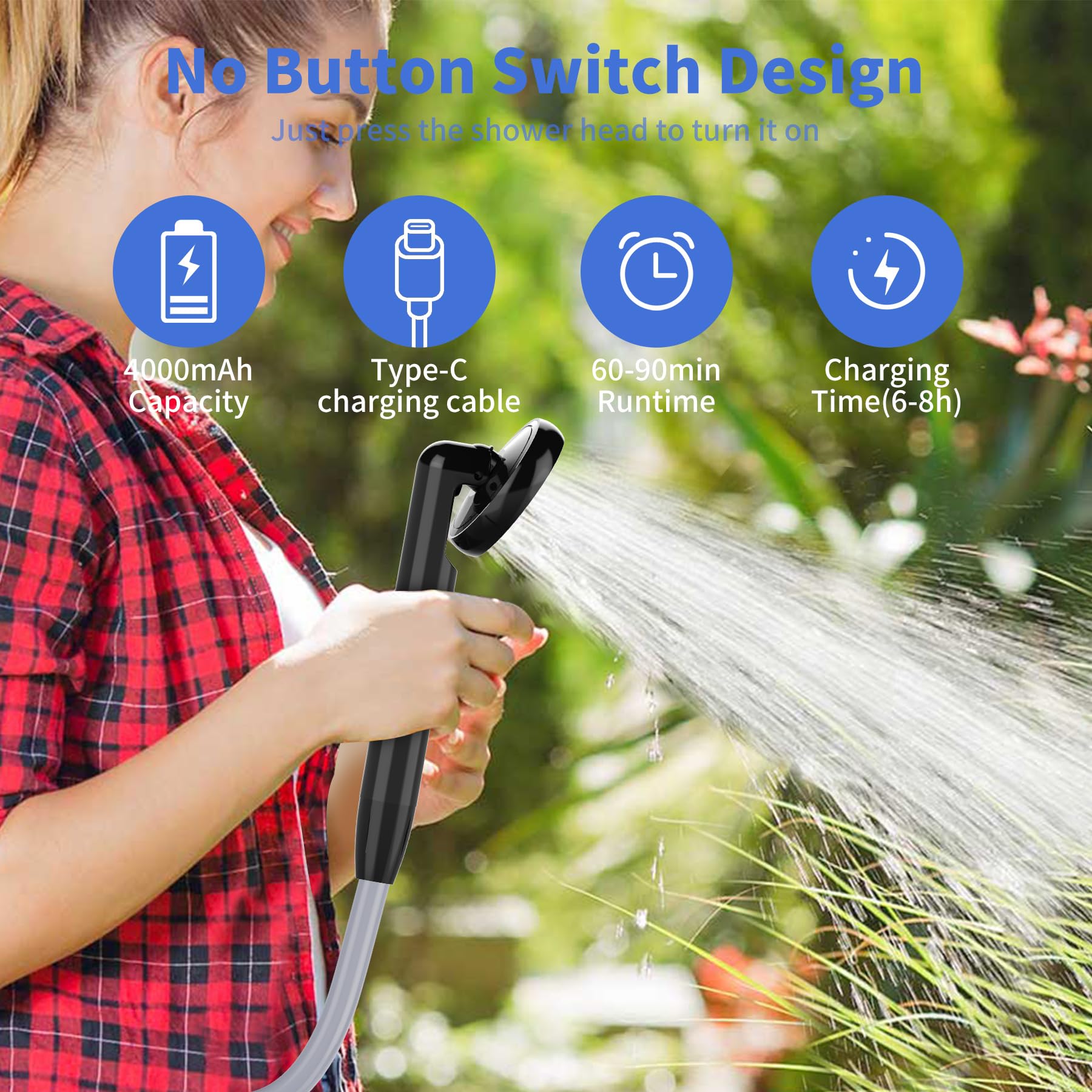 Campingdusche Mit Pumpe - Tragbare Outdoor Dusche 5-3L/min - Mehrere Sprühmodi Für Garten & Reisen